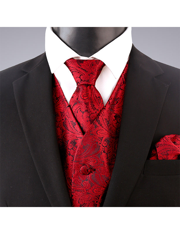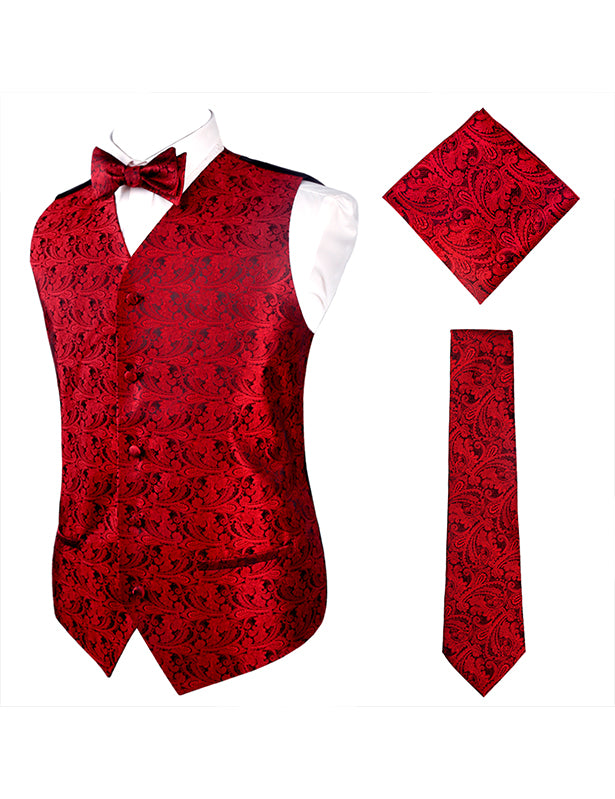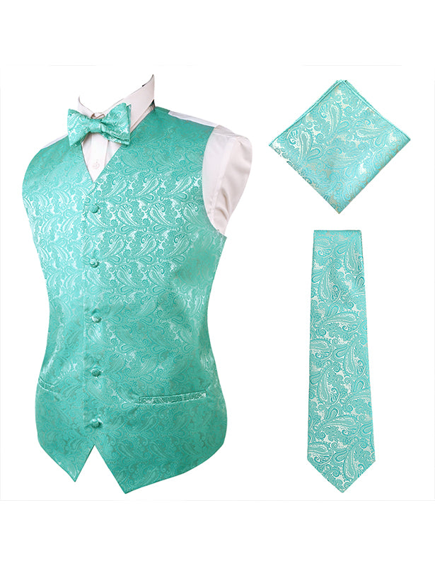 Men's Paisley Suit Vest, Self-tied Bow Tie, 3.35inch(8.5cm) Necktie and Pocket Square Set