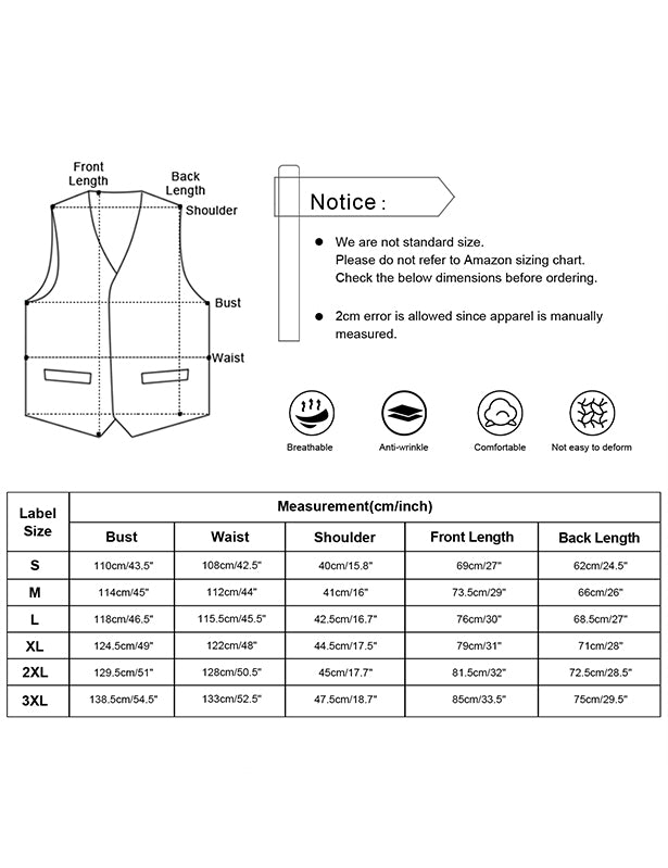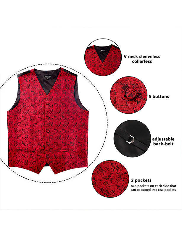 - DESIGN: The V-neck waistcoat is designed with classic paisley pattern, 5 colored buttons, adjustable back buckle strap and 2 real pockets