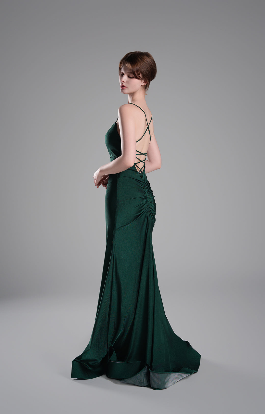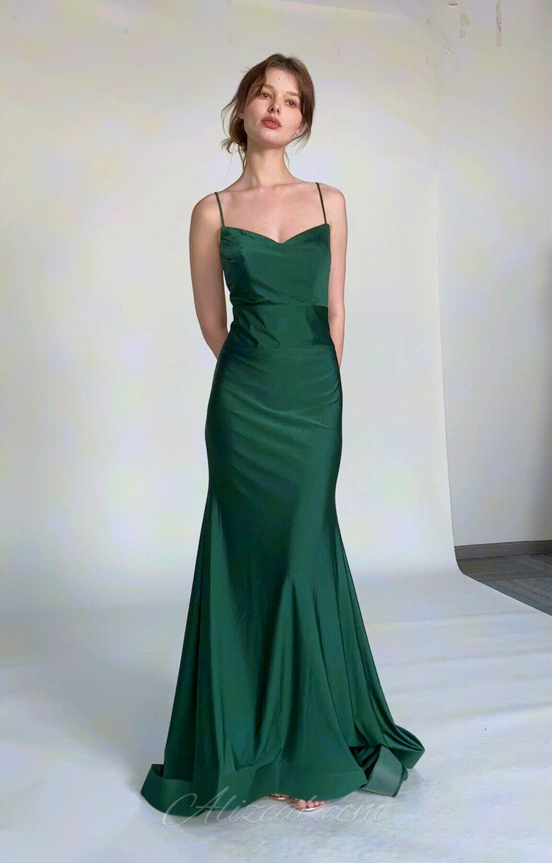 This luxurious emerald green gown is ideal for a wide range of formal occasions, including evening galas, weddings, cocktail parties.
