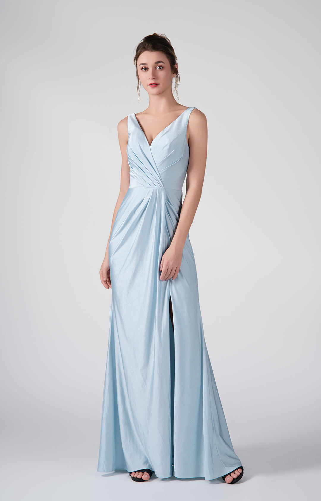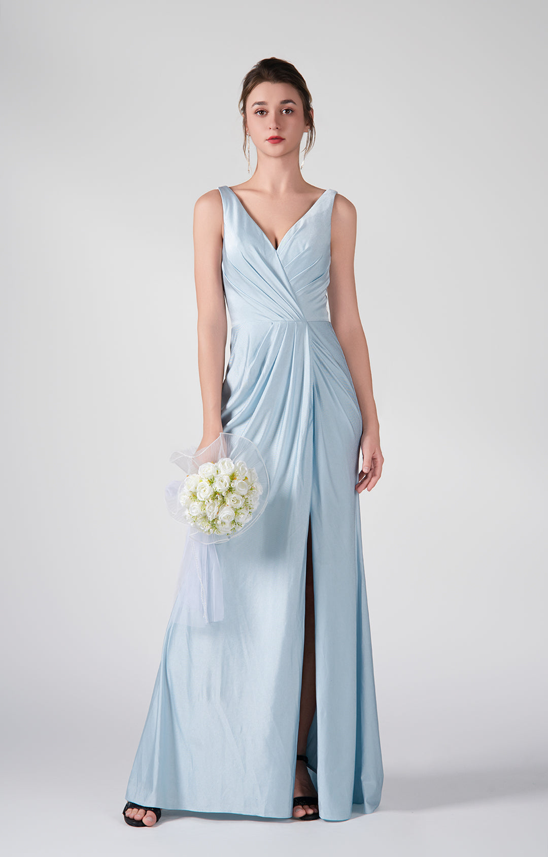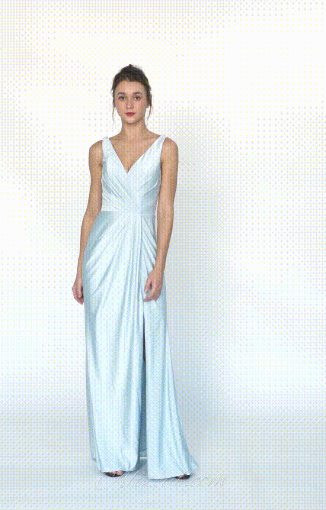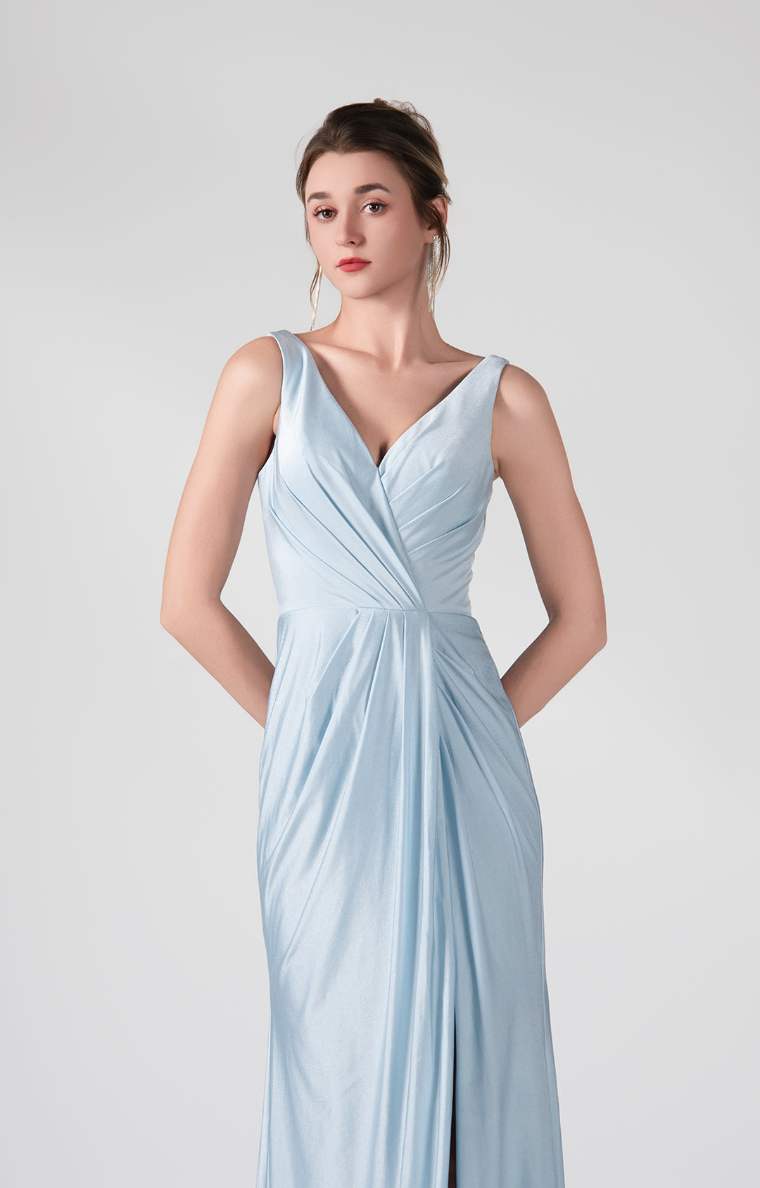 Tank Straps V-Neck Pleated Side Slit A-line Dresses
