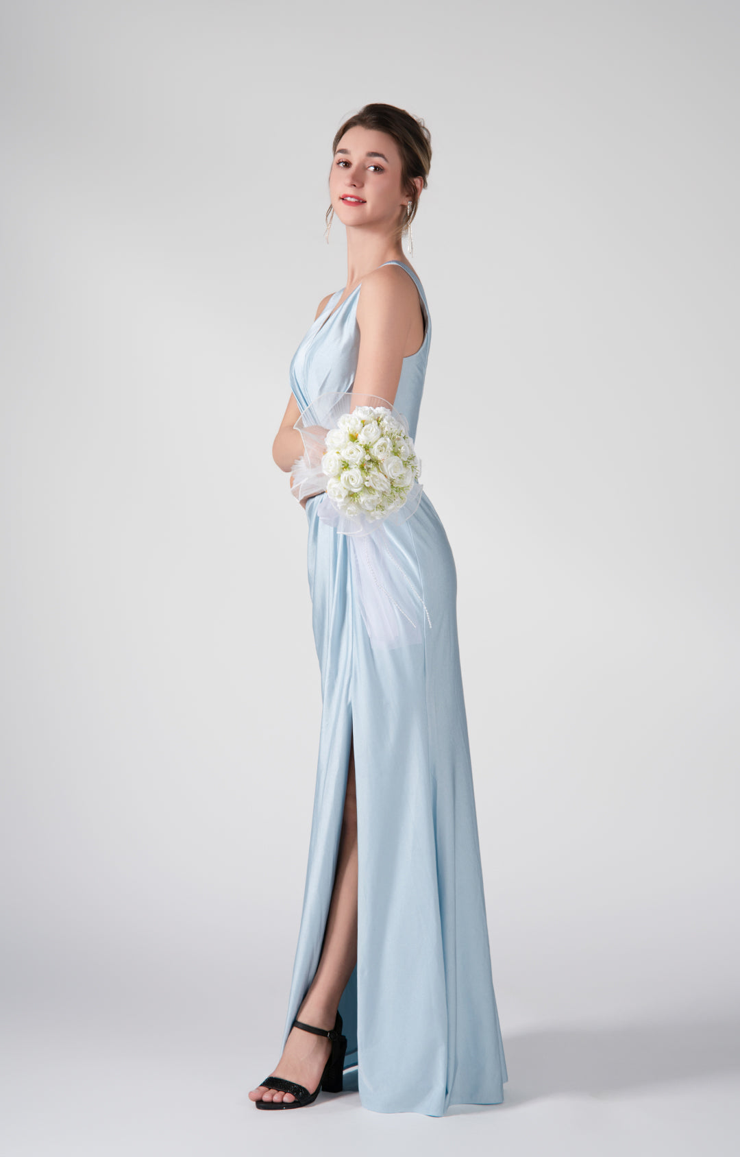 This elegant gown is crafted from high-quality swimsuit fabric, known for its durability, stretch, and sleek finish. The fabric provides a smooth and comfortable fit, allowing for effortless movement, while maintaining a polished and fashionable look.