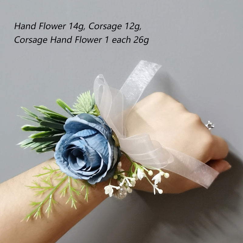 Weight: 64g(Set of 1boutonniere and 1wrist corsage with packaging)