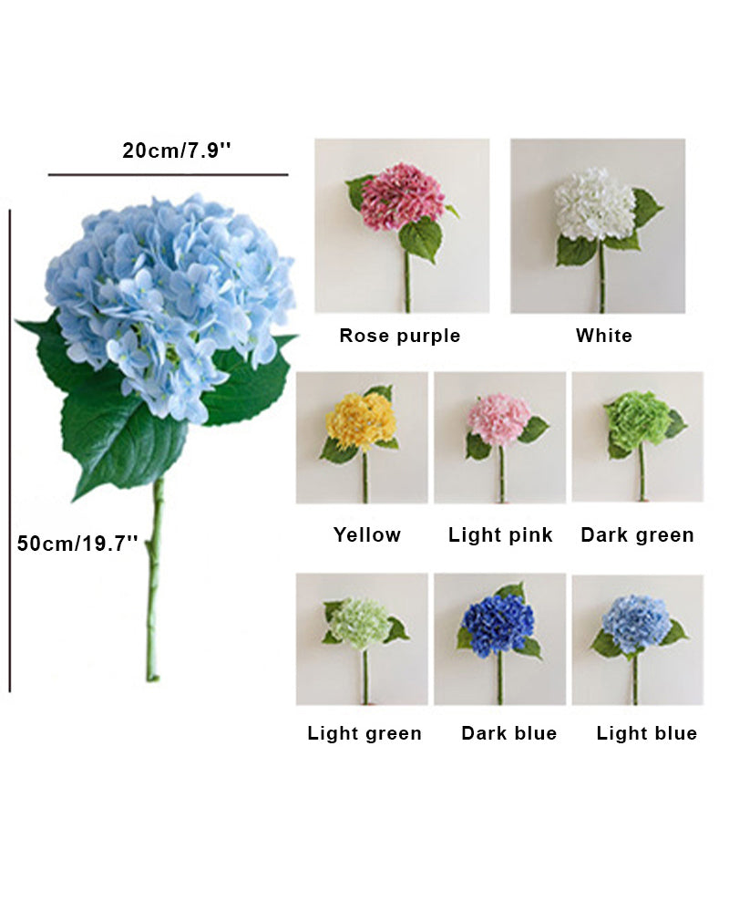 Occasions: Simulated hydrangea bouquets are suitable for various occasions, such as weddings, home decoration, office decoration, or special celebrations. They are durable and easy to care for and are often used to add elegance and color.