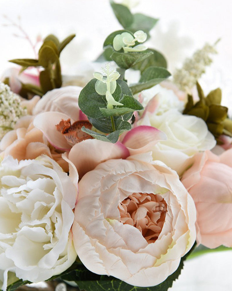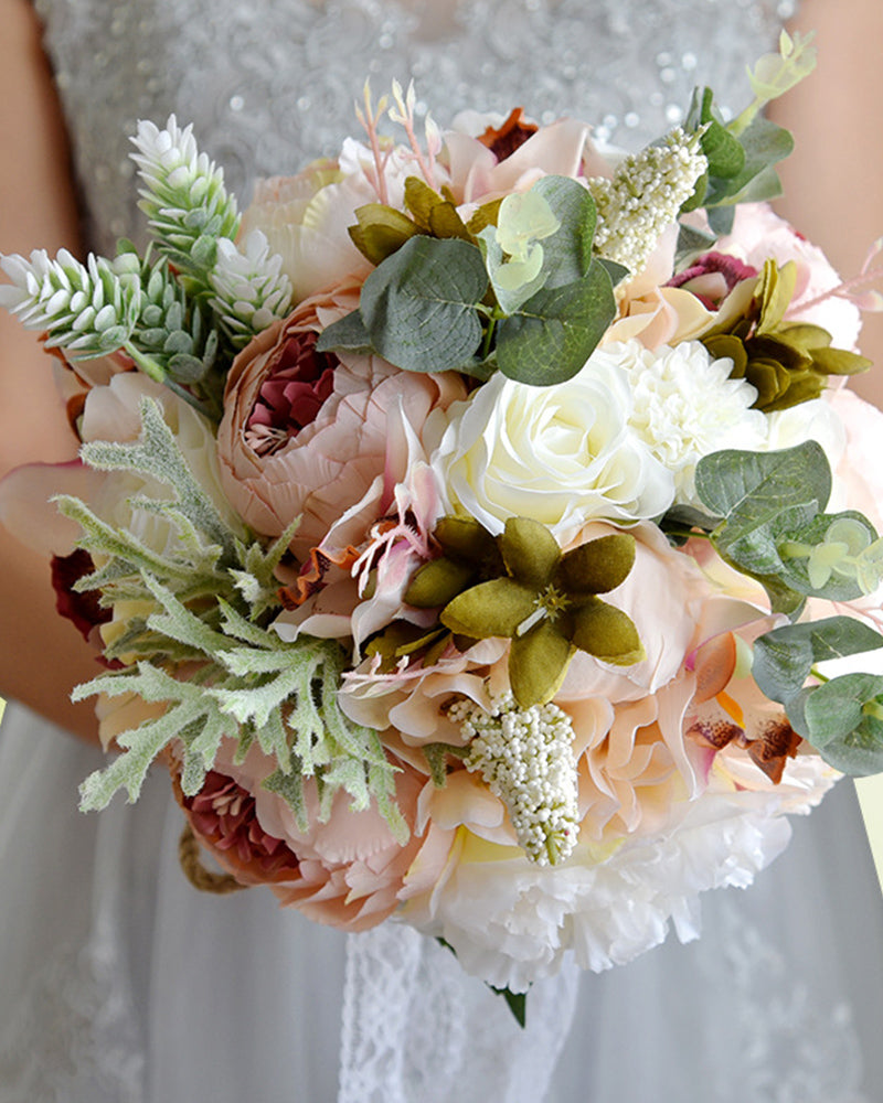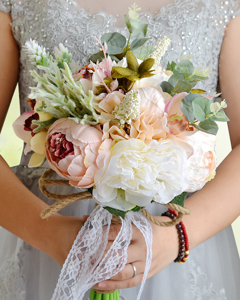 Outdoor Artificial Sarah Peony Flower Lace Ribbon Wedding Bouquets