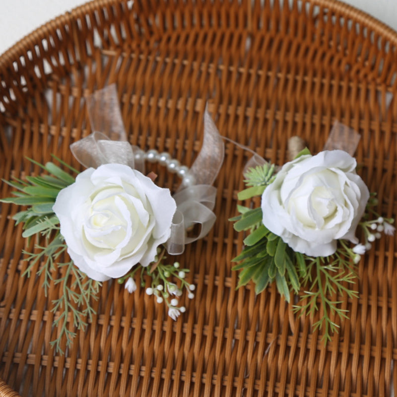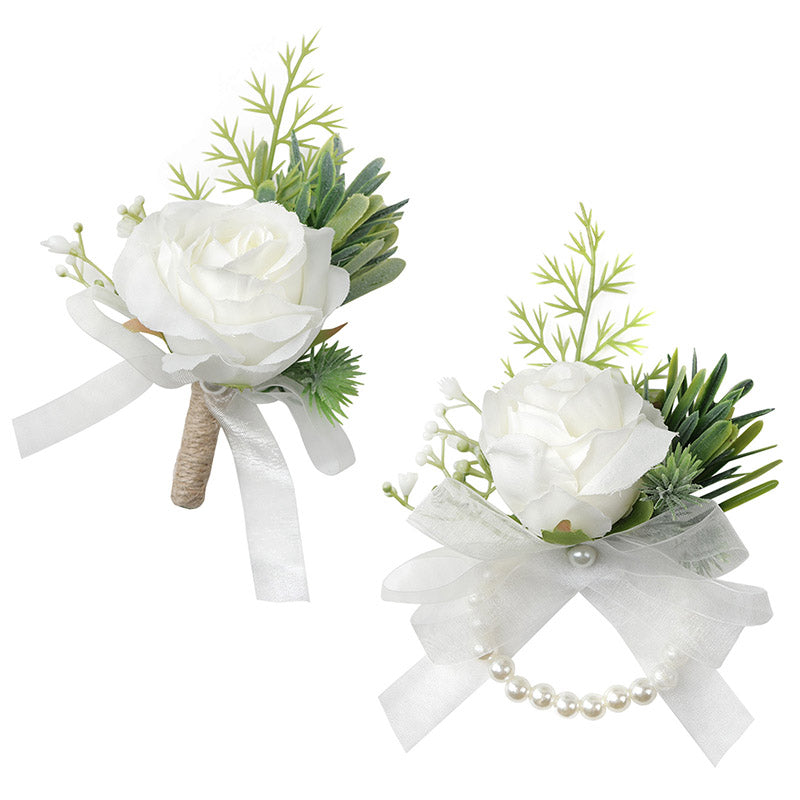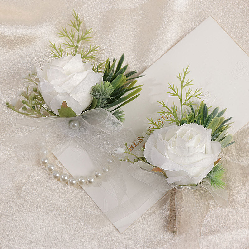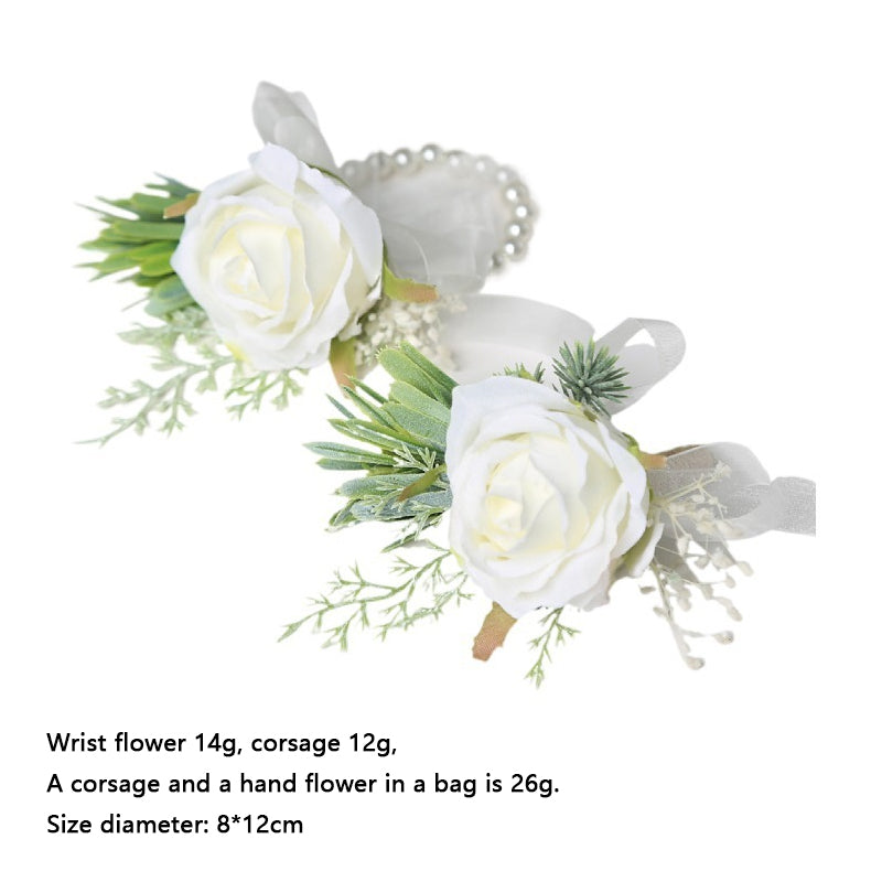 Weight: 64g(Set of 1boutonniere and 1wrist corsage with packaging)