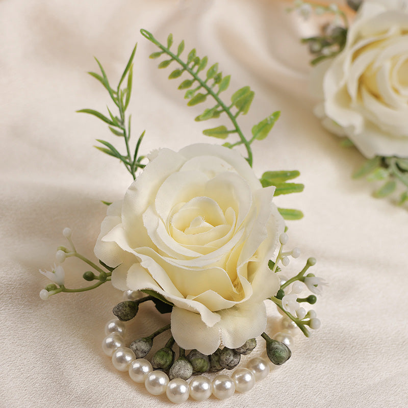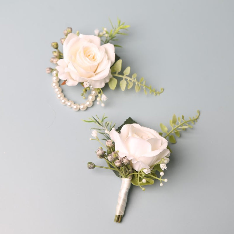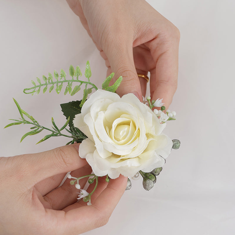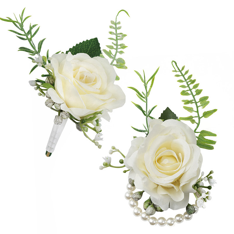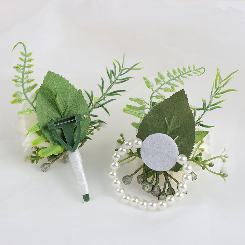Simple Forest Artificial Rose Wrist Corsage Boutonniere Set