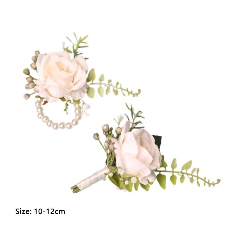 Our boutonniere comes equipped with a T-shaped clip on the back for easy attachment, while the wrist corsage is designed with an adjustable bracelet to ensure a comfortable fit for most sizes.