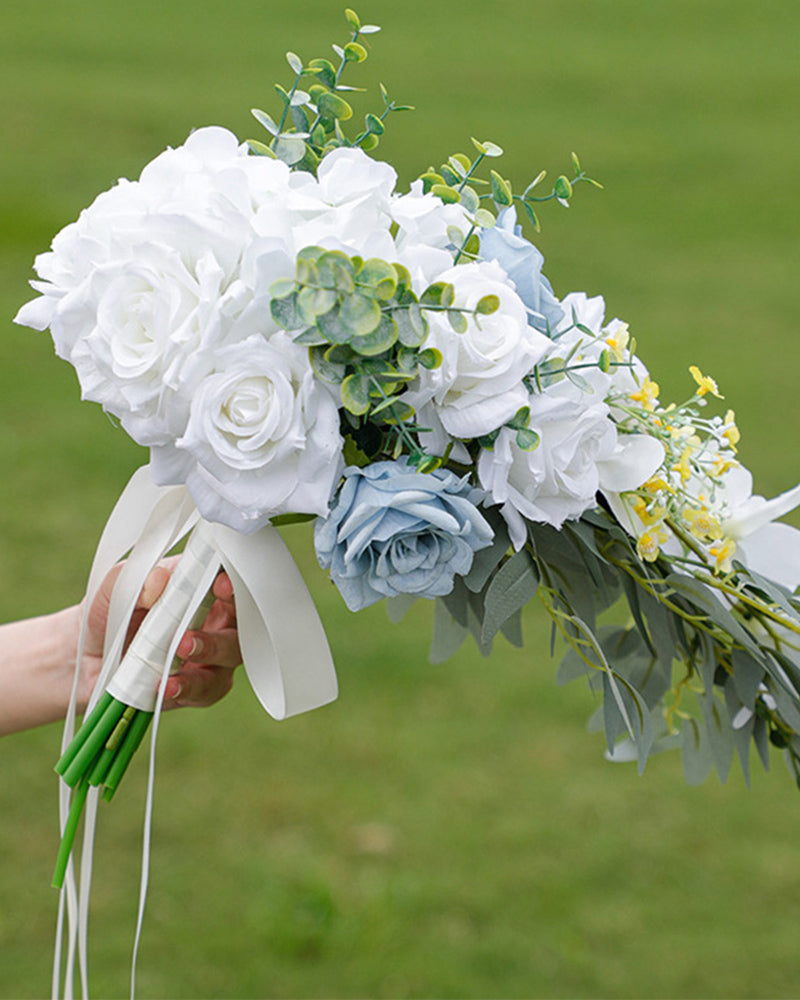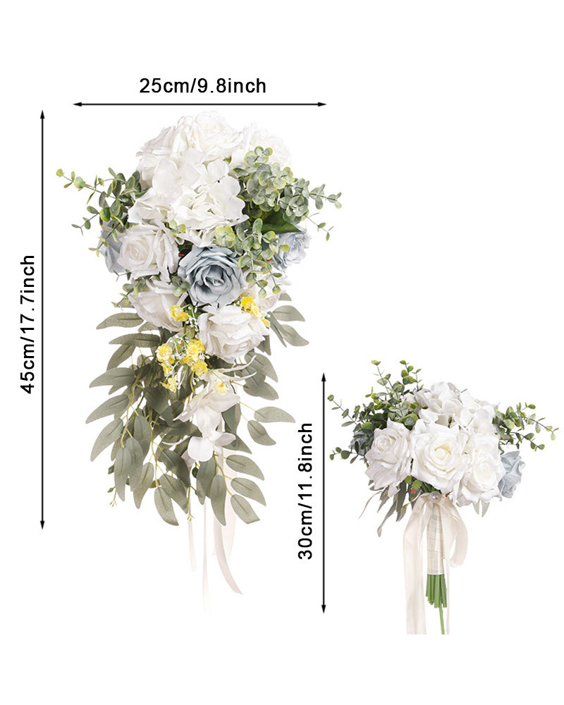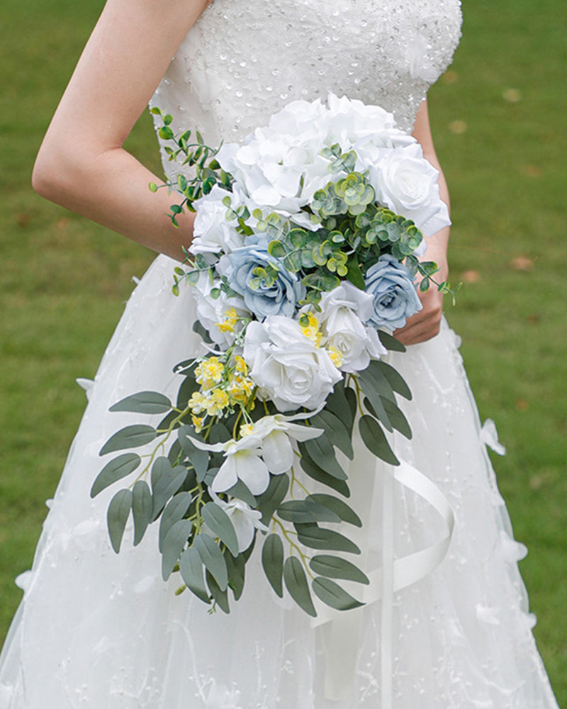 Waterfall Romantic Blue White Rose Flowers Wedding Bouquet