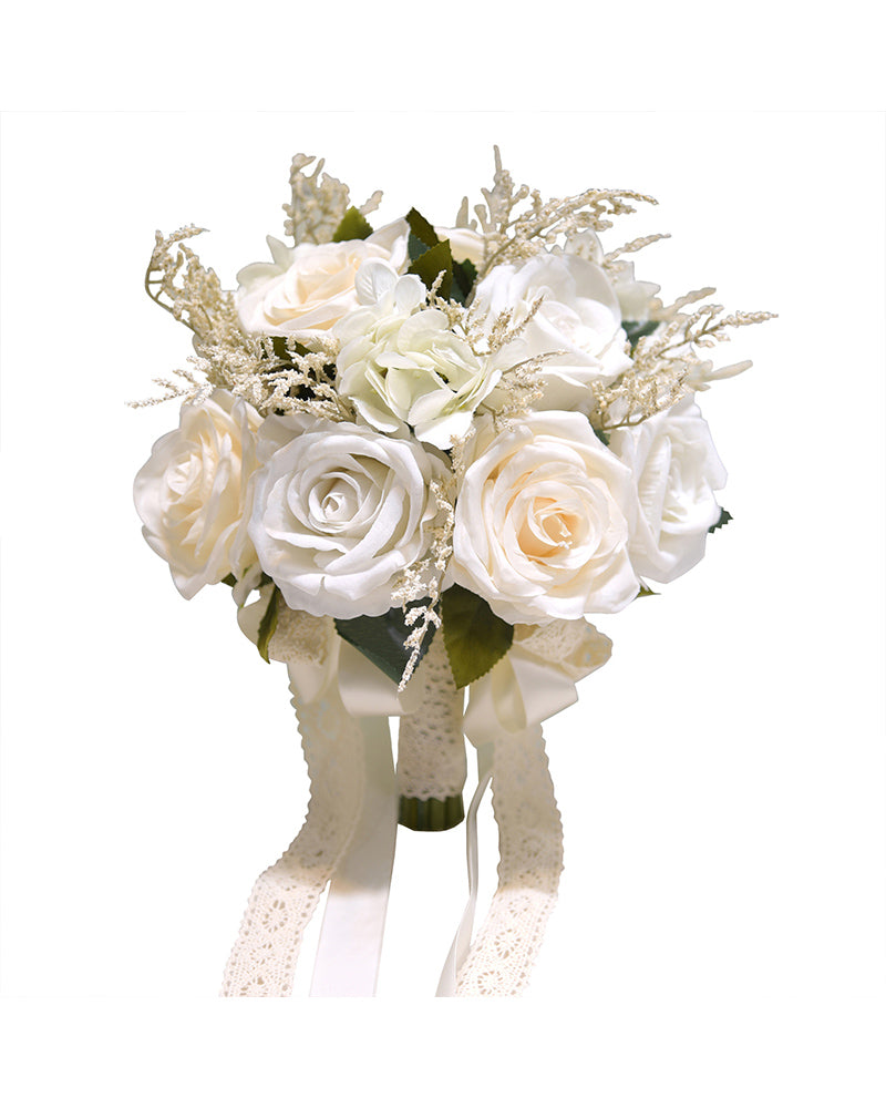 White Artificial Roses Ribbon for Wedding Church Decoration Bouquets