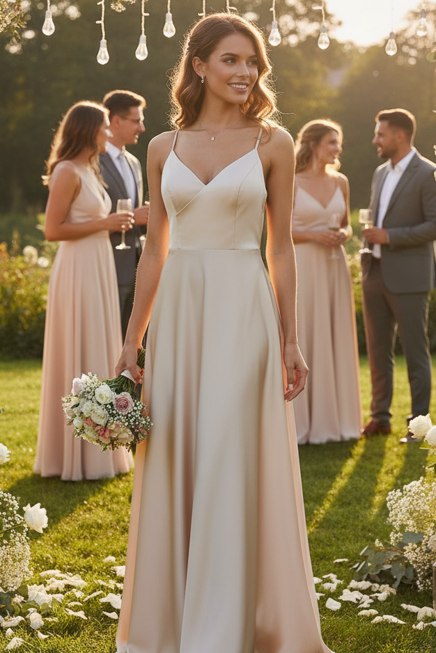 V-Neck Spaghetti Straps Cut-Out Maxi Bridemaid Dress