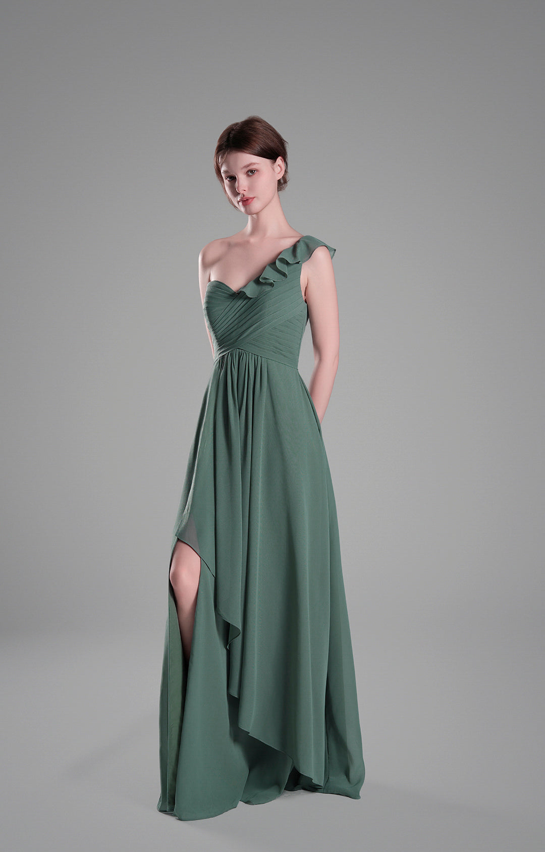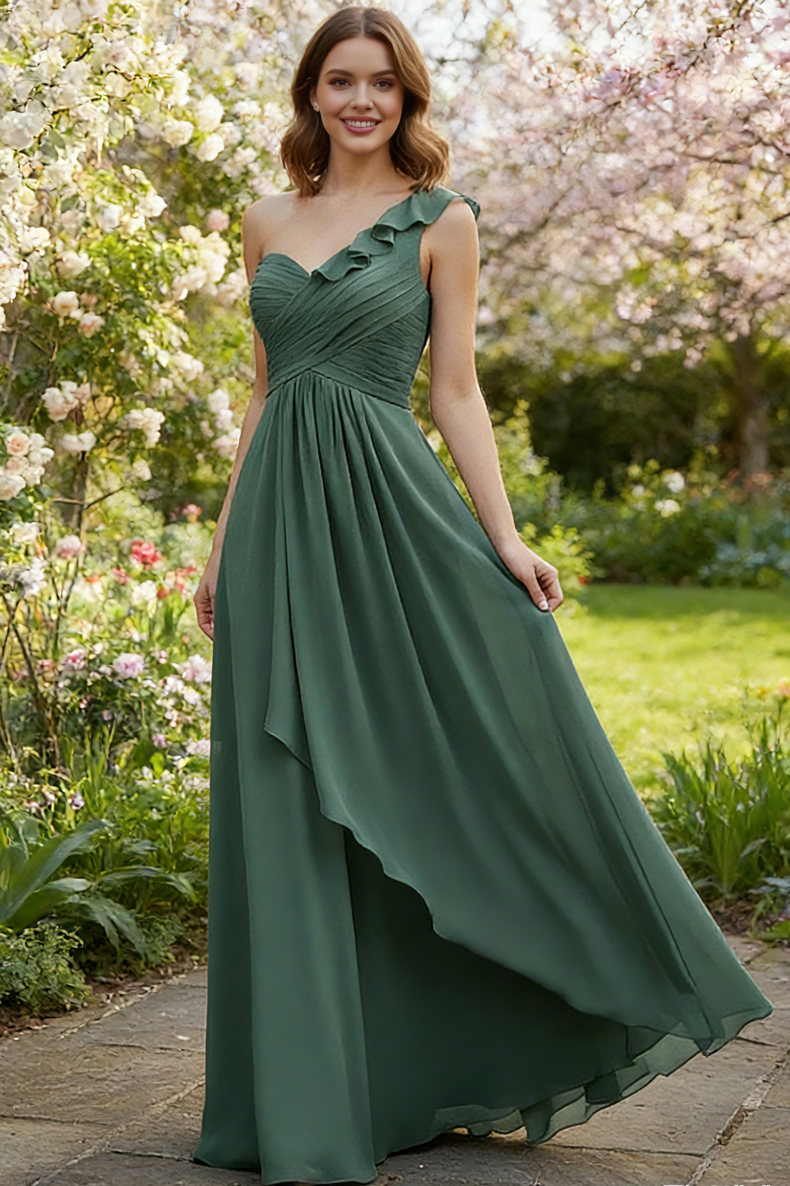 One-Shoulder Rüschen Plissee A-Linien Kleider