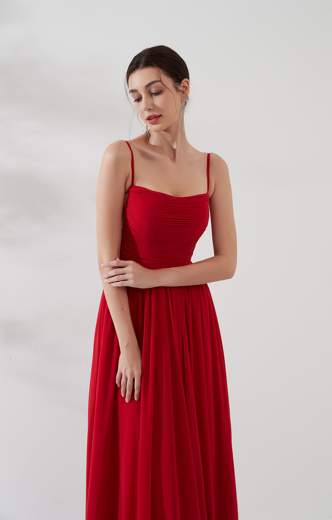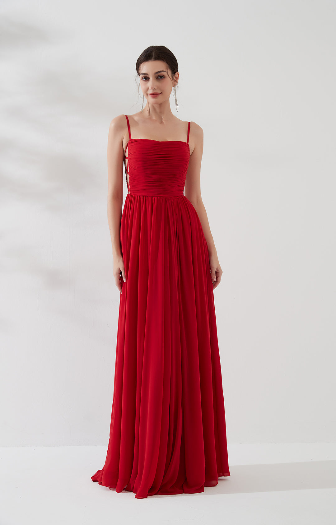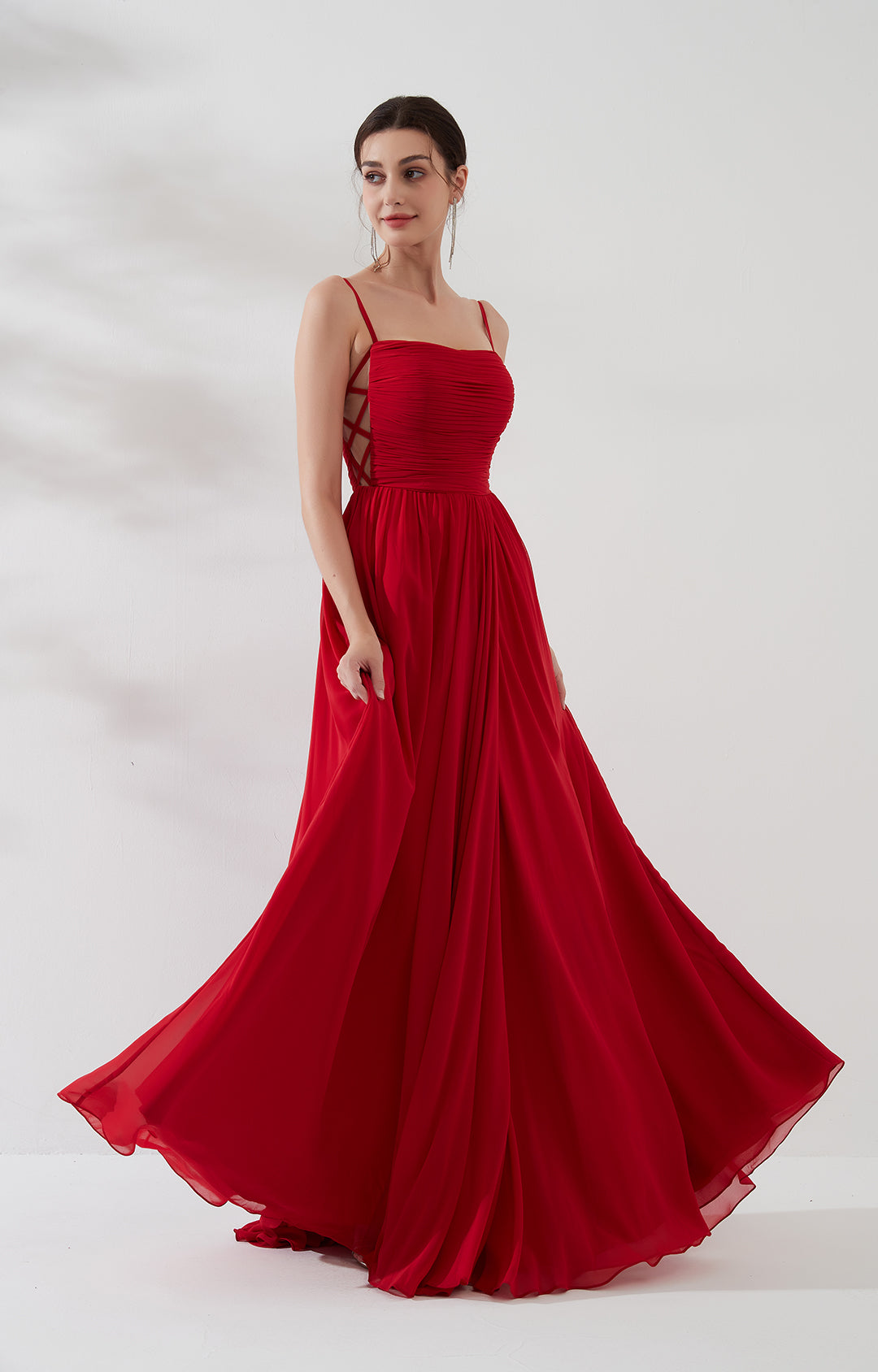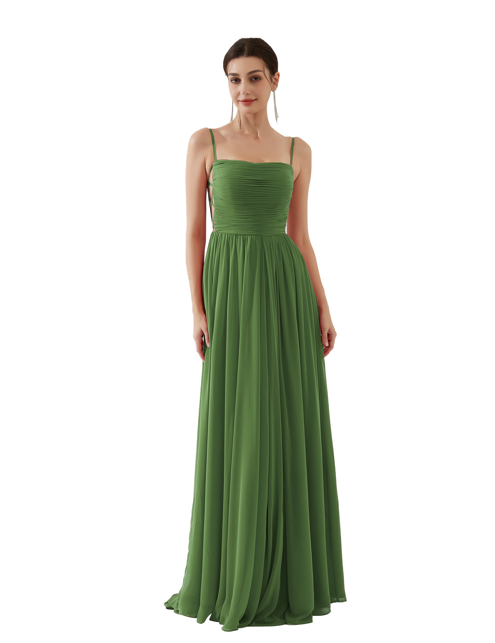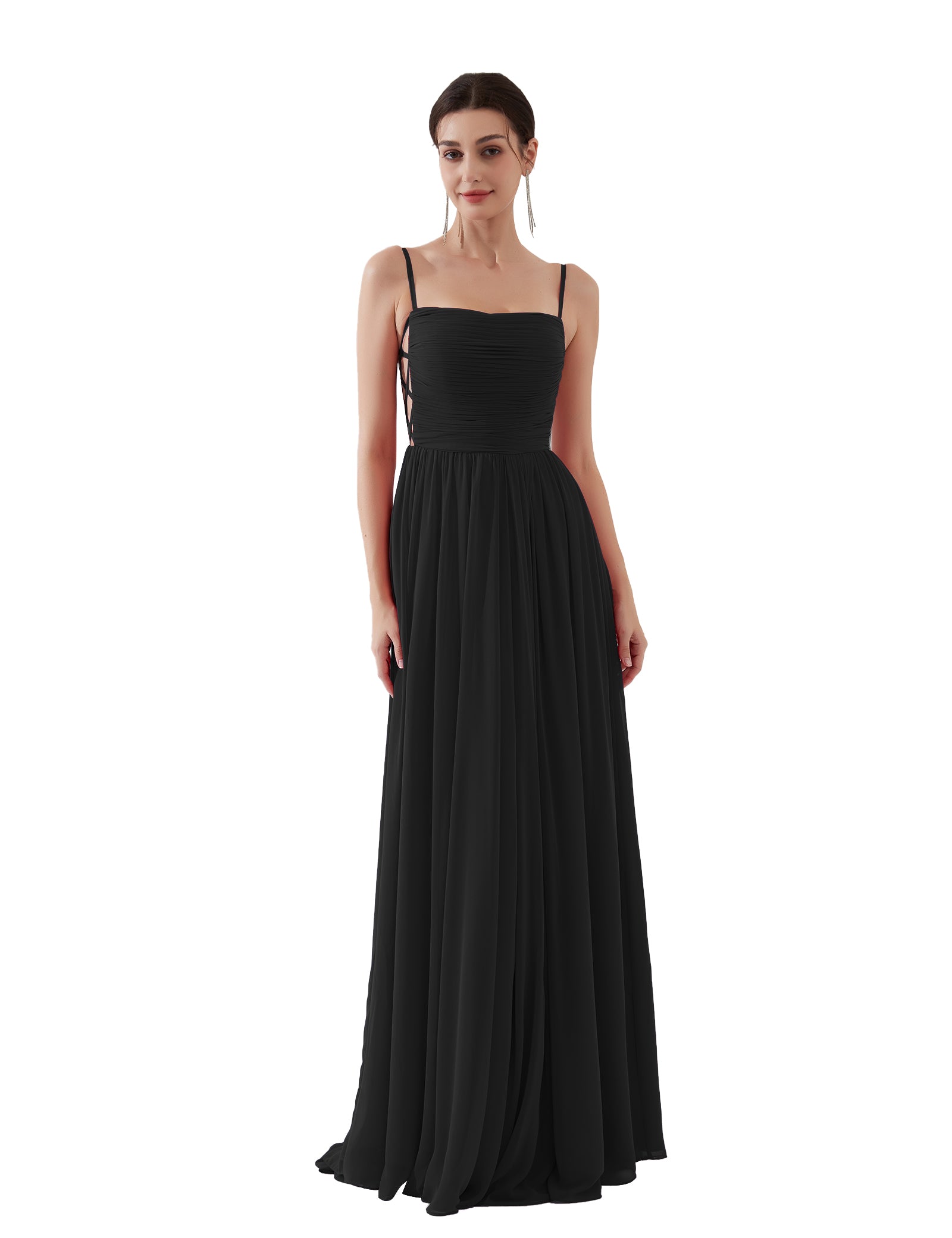 A-Linie Spaghettiträgern Quadratischer Kragen Bodenlanges Abendkleid