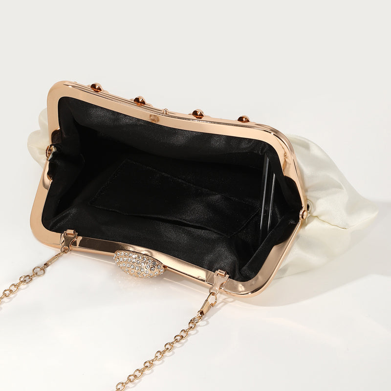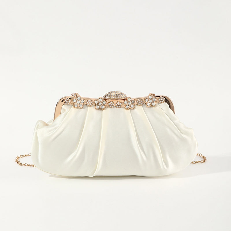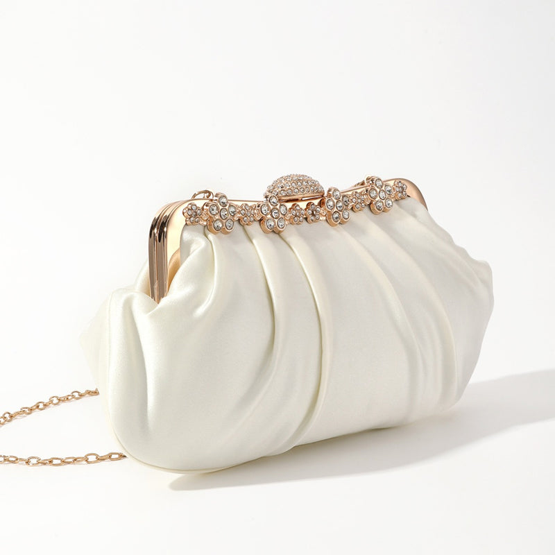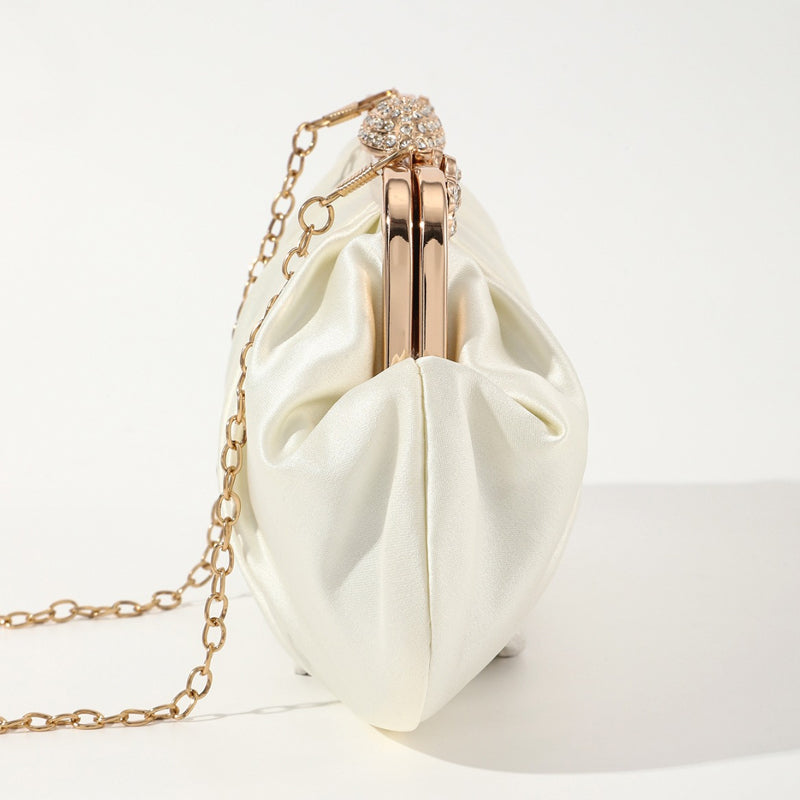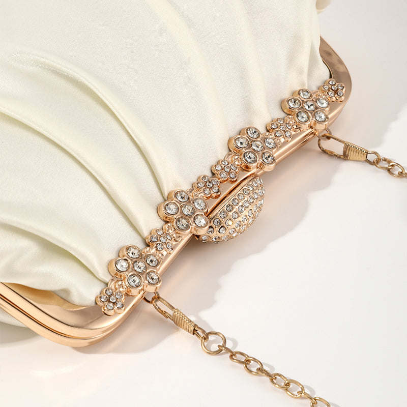 Party-Wolkentasche aus Satin mit Rüschen und Diamanten