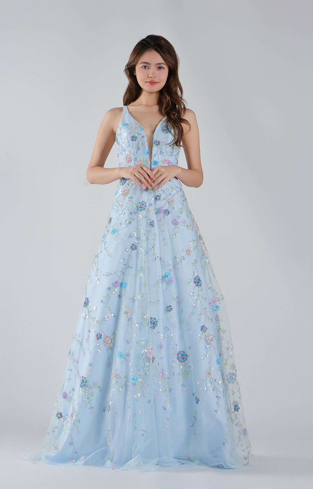 Lace-Up Straps Deep V-Neck Floral Sequin A-Line Dresses