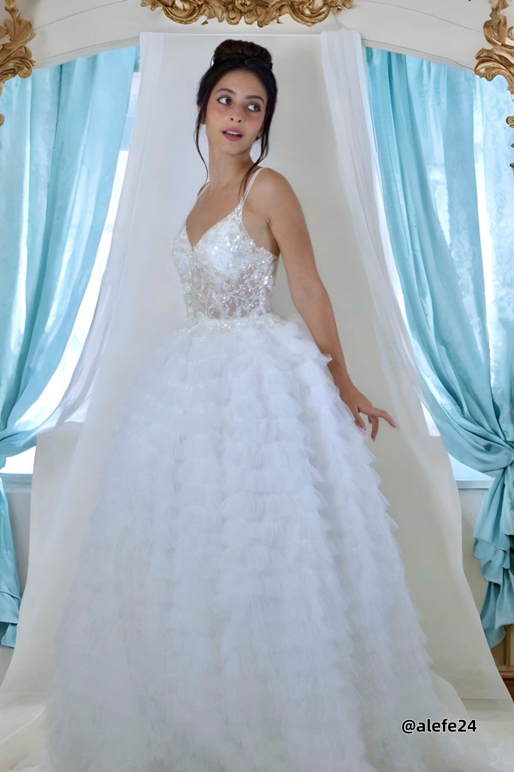Puffkleider mit Spaghettiträgern und Perlenbesetztem Mieder