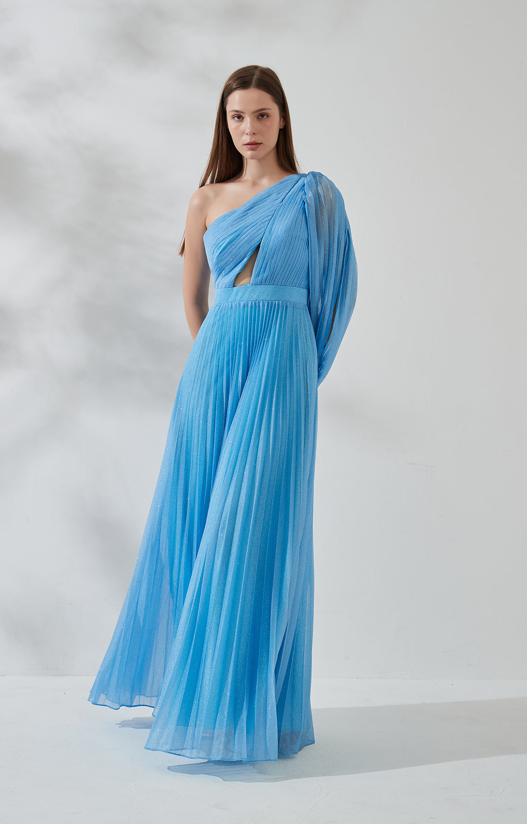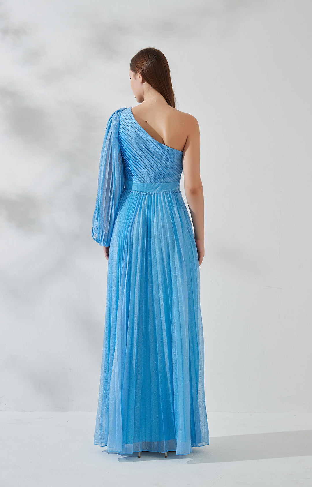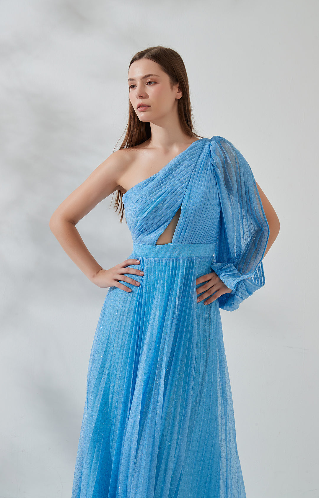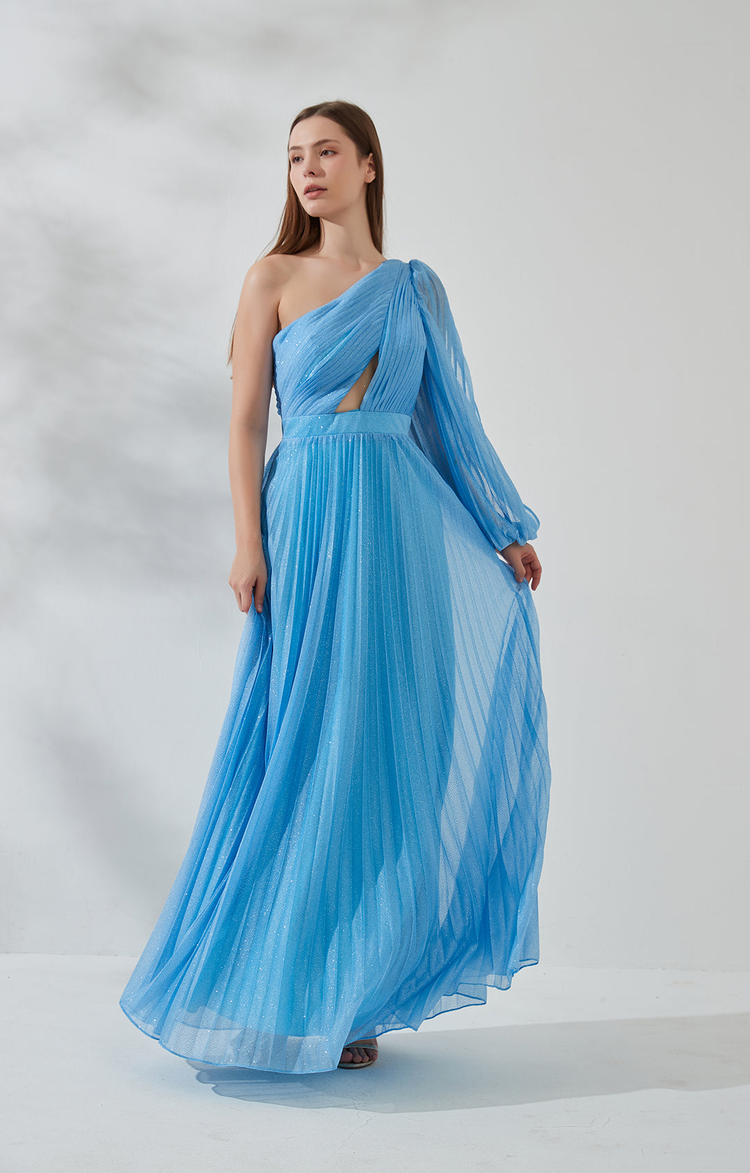 One-Shoulder-Bischofsärmel Cut-out Pailletten Plissee Brautjungfernkleid