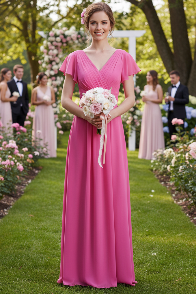 Plissierte Kleider mit V-Ausschnitt und Flatterärmeln in fließender A-Linie