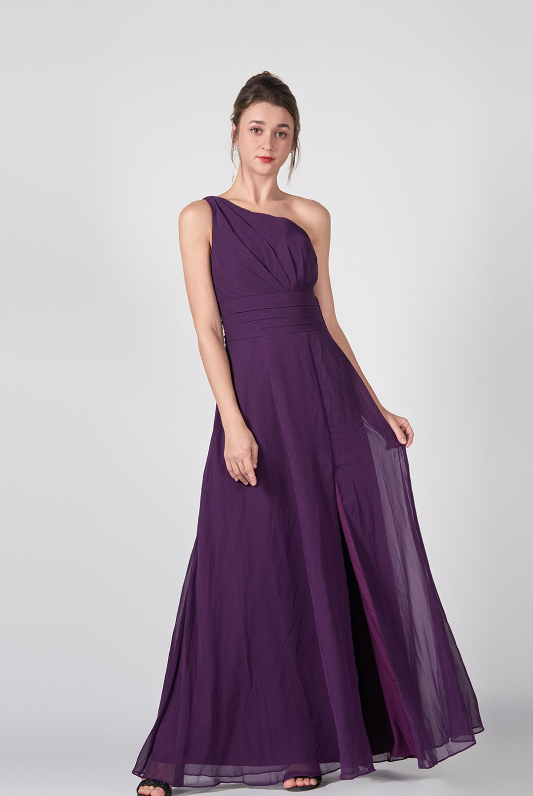 Ein-Schulter A-Linie Seitlich geschlitztes Chiffon-Maxikleid