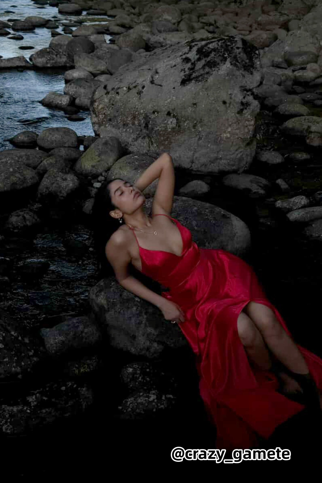Dieses Kleid ist aus Satinstoff gefertigt, der glatt und weich ist und gut fällt.