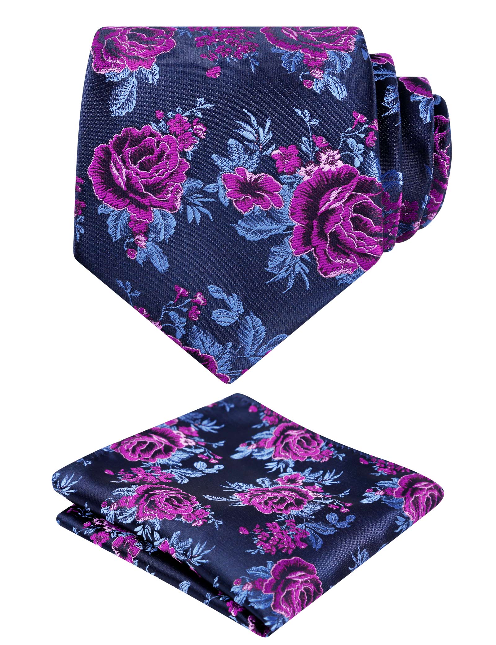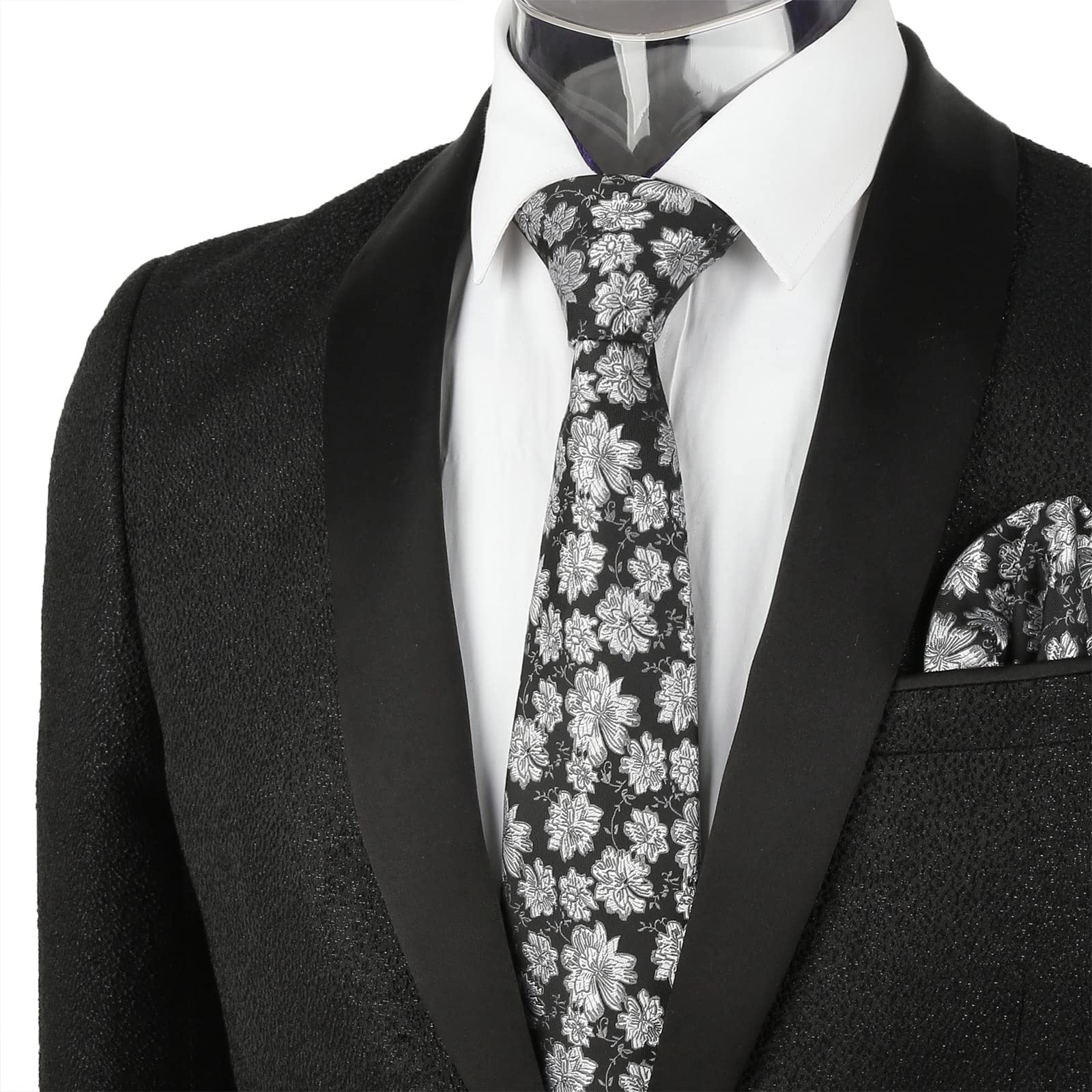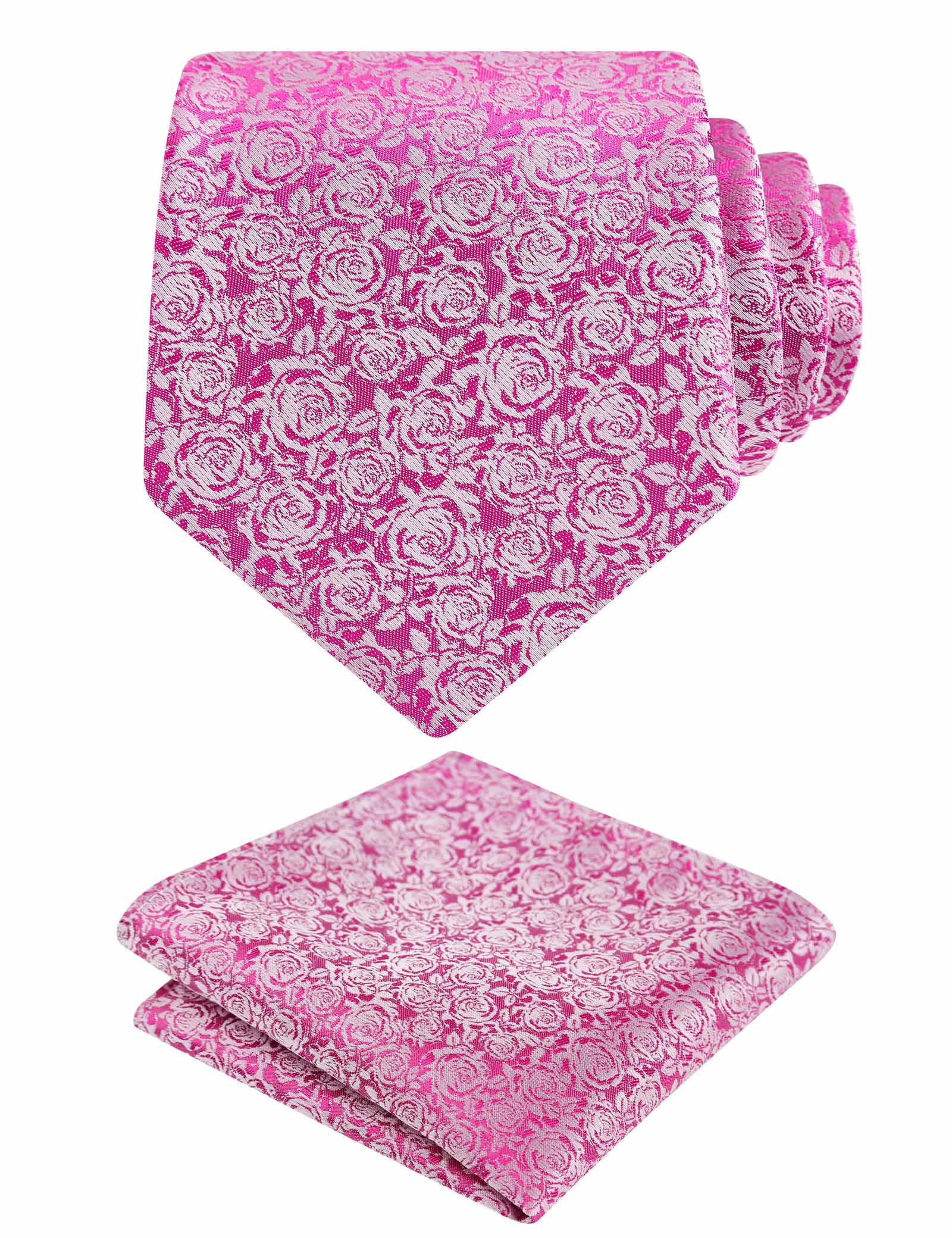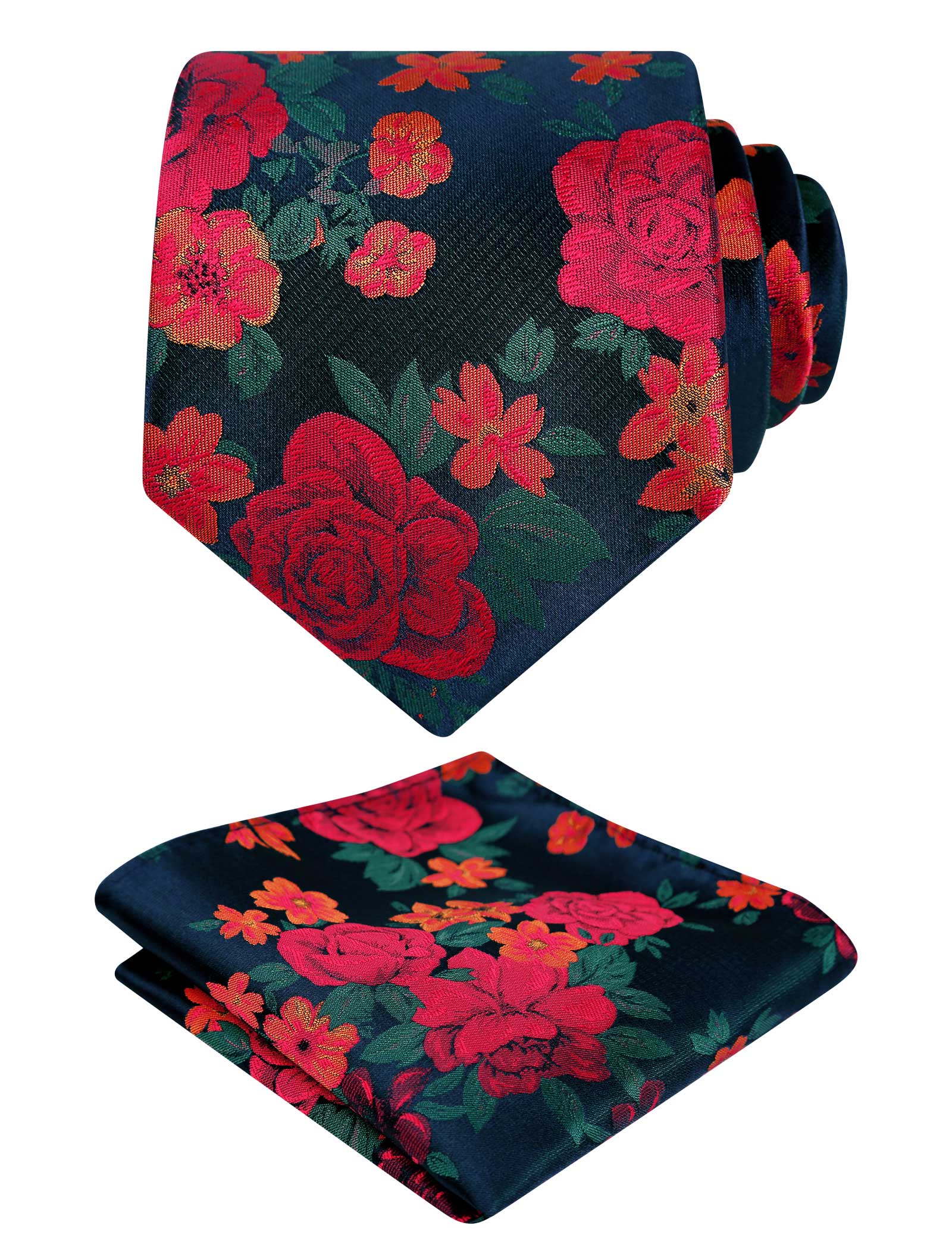 Herren-Krawatte mit Rosenblumenmuster, 8 cm, mit Einstecktuch mit Blumenmuster, Set, 145
