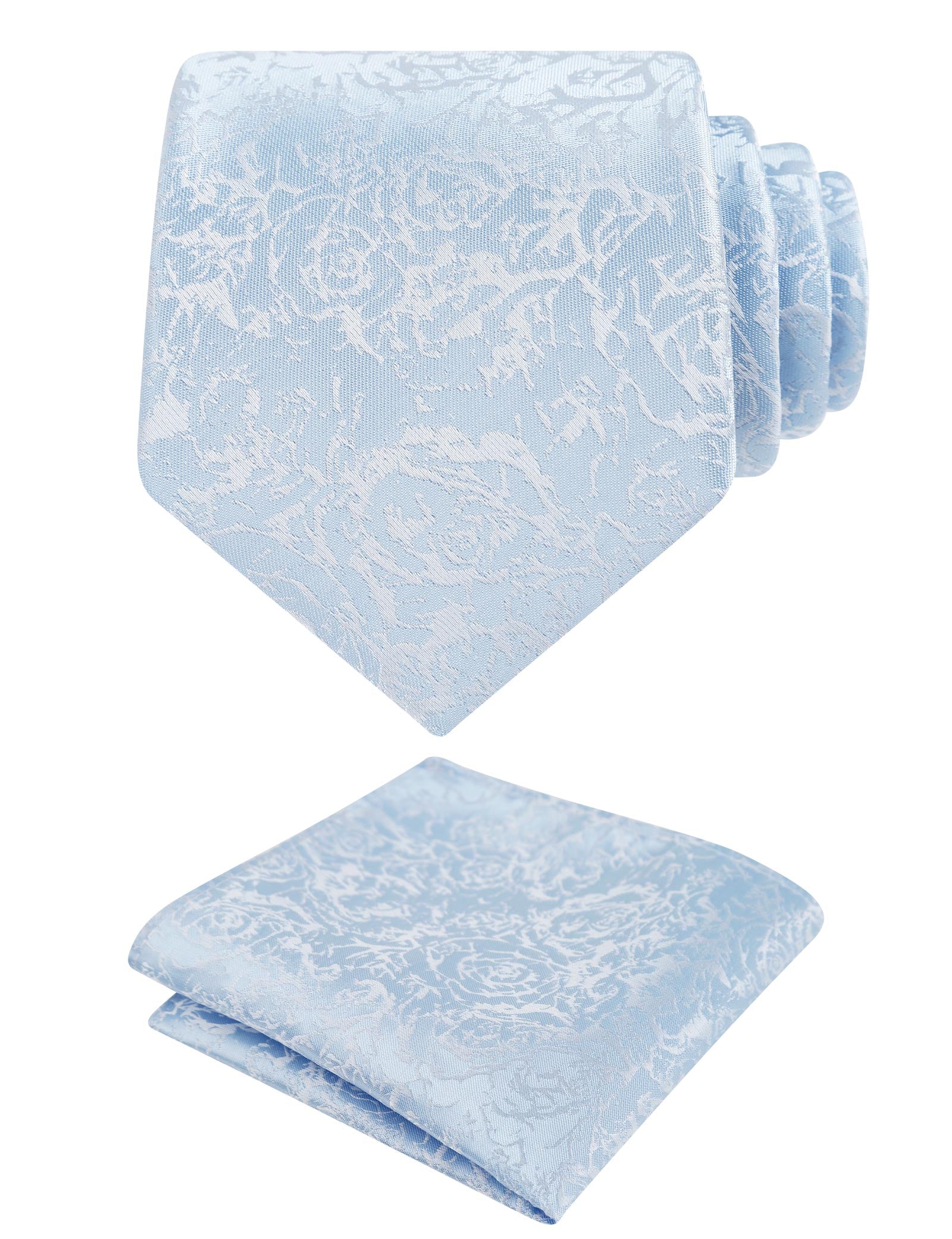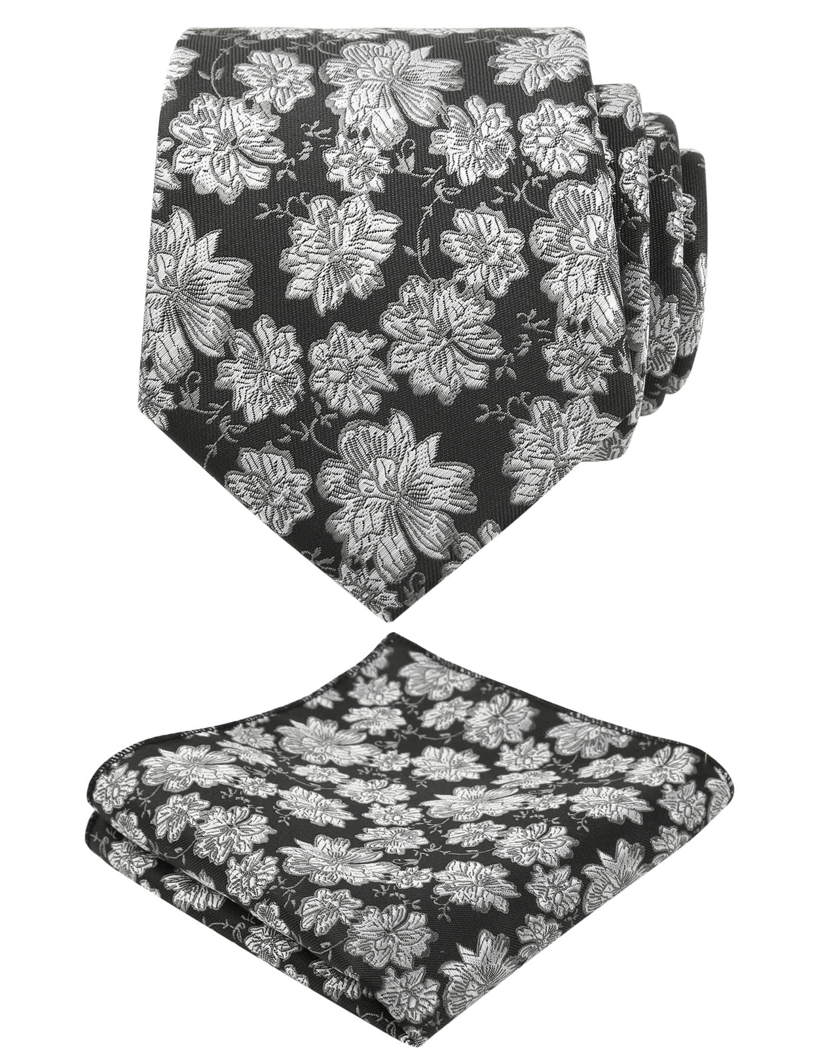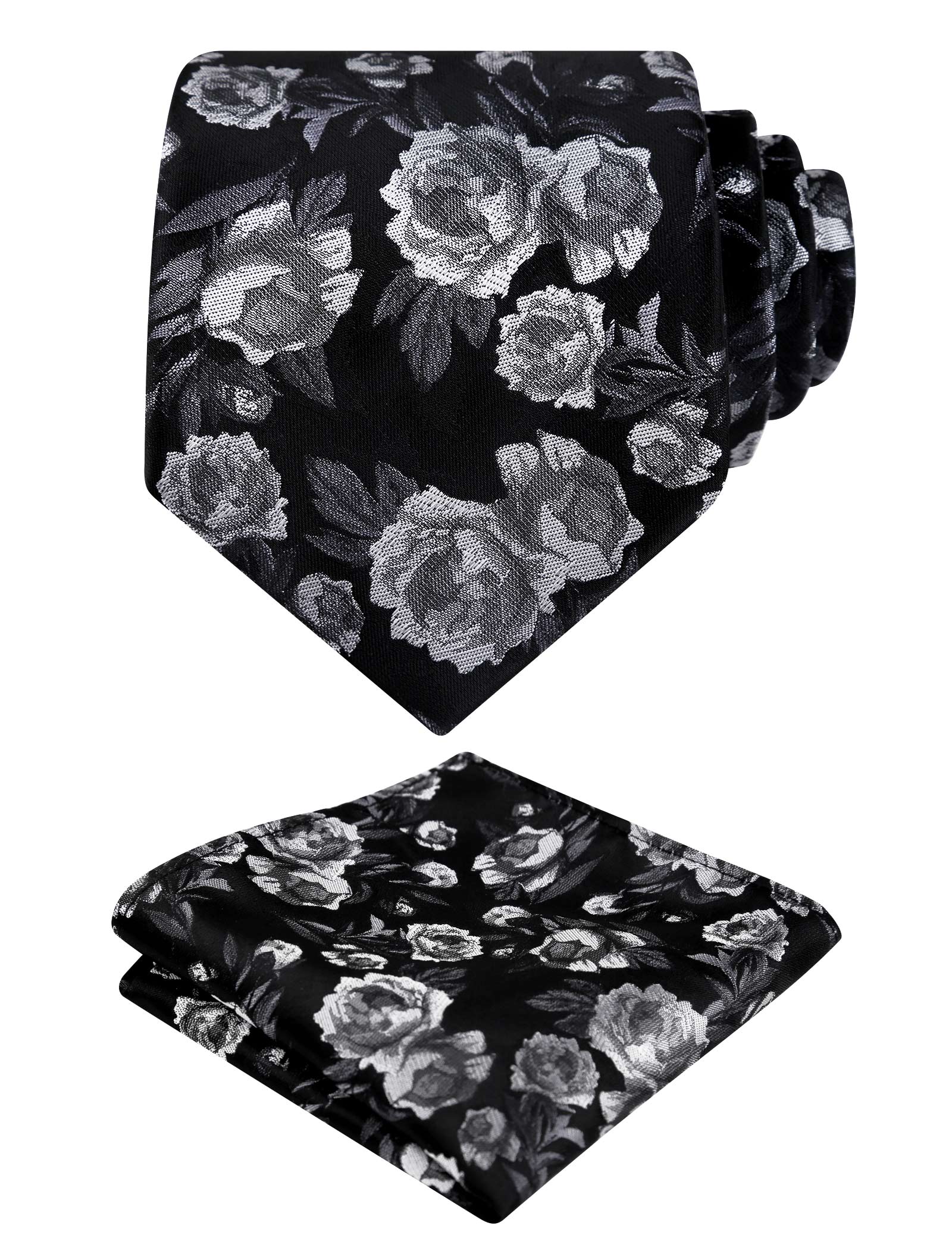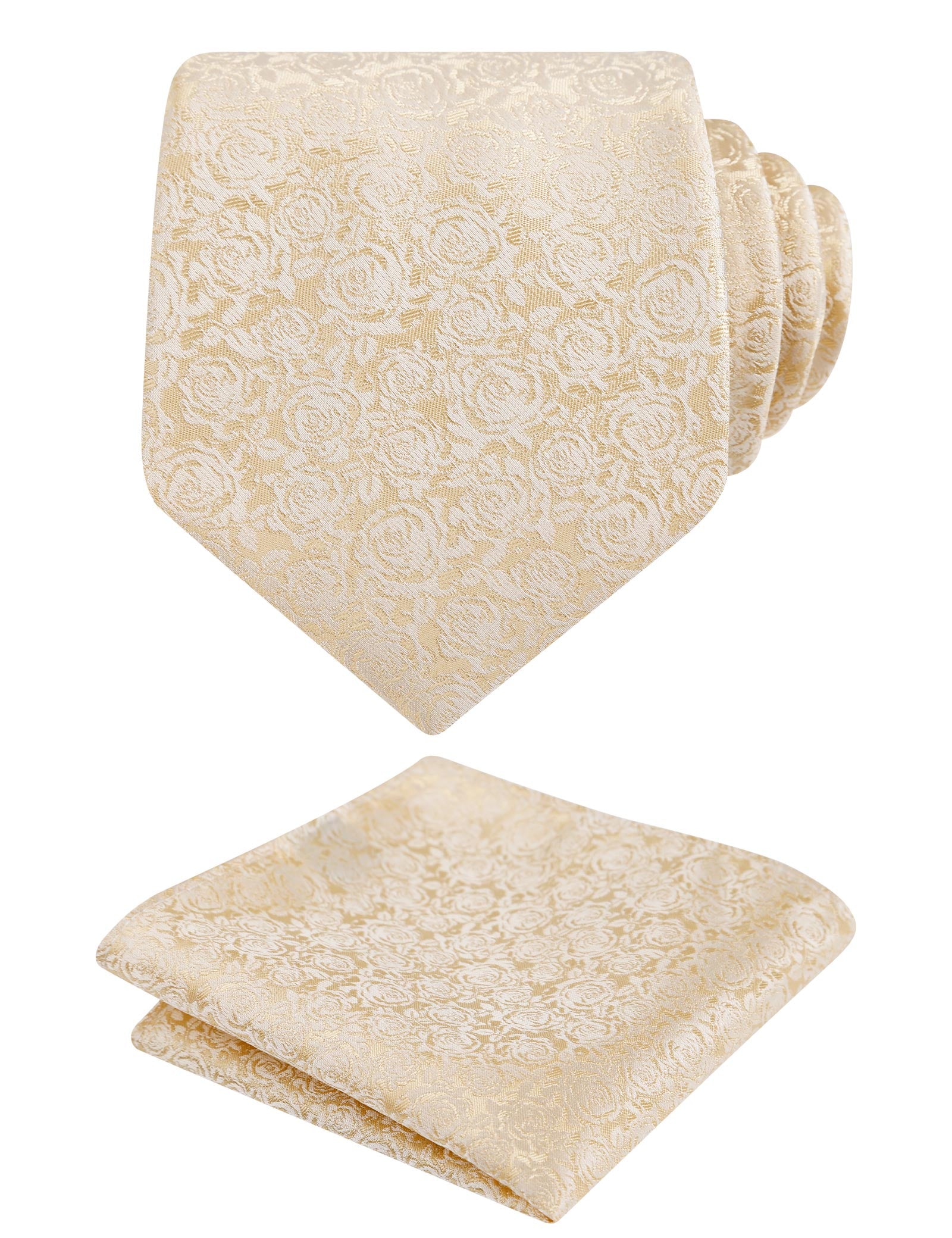 Herren-Krawatte mit Rosenblumenmuster, 8 cm, mit Einstecktuch mit Blumenmuster, Set, 145