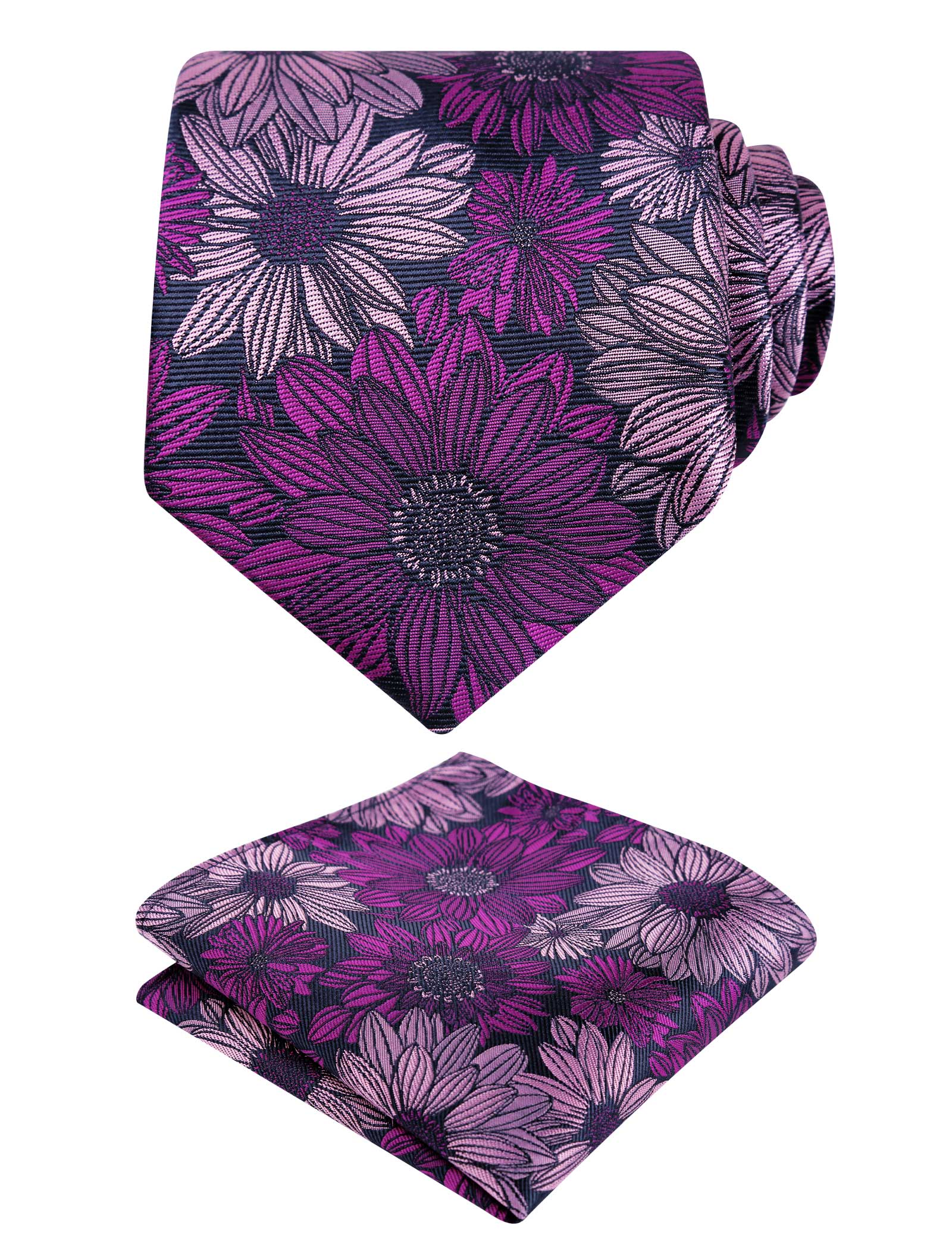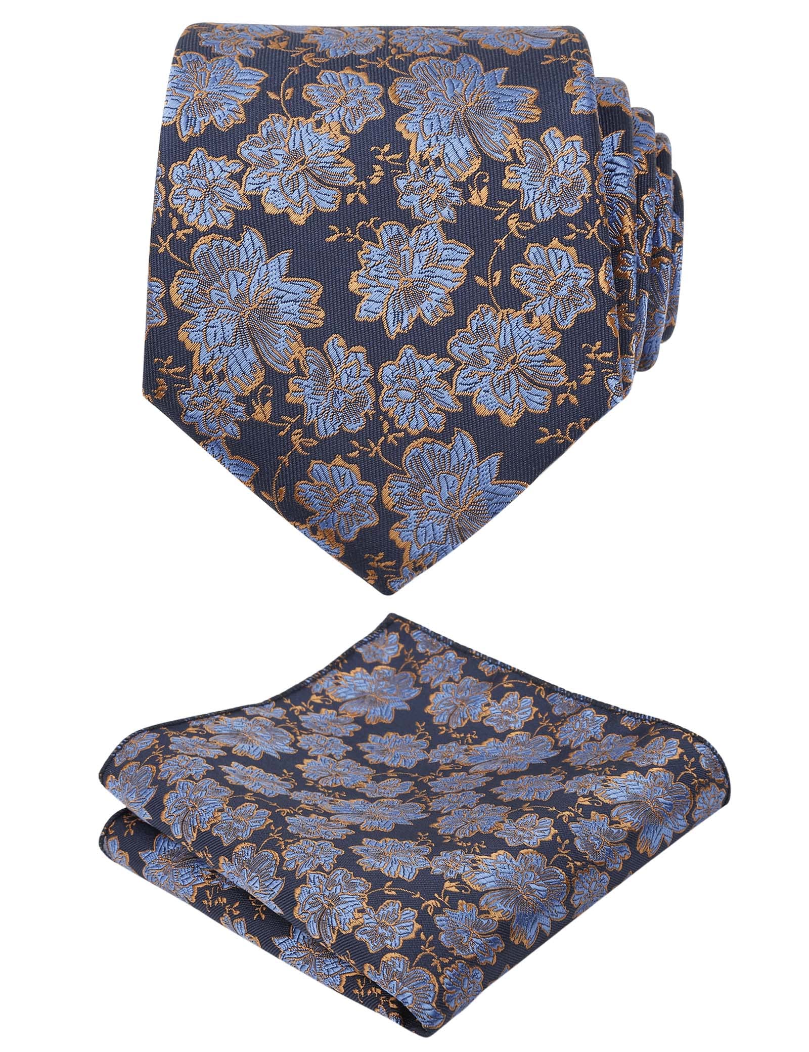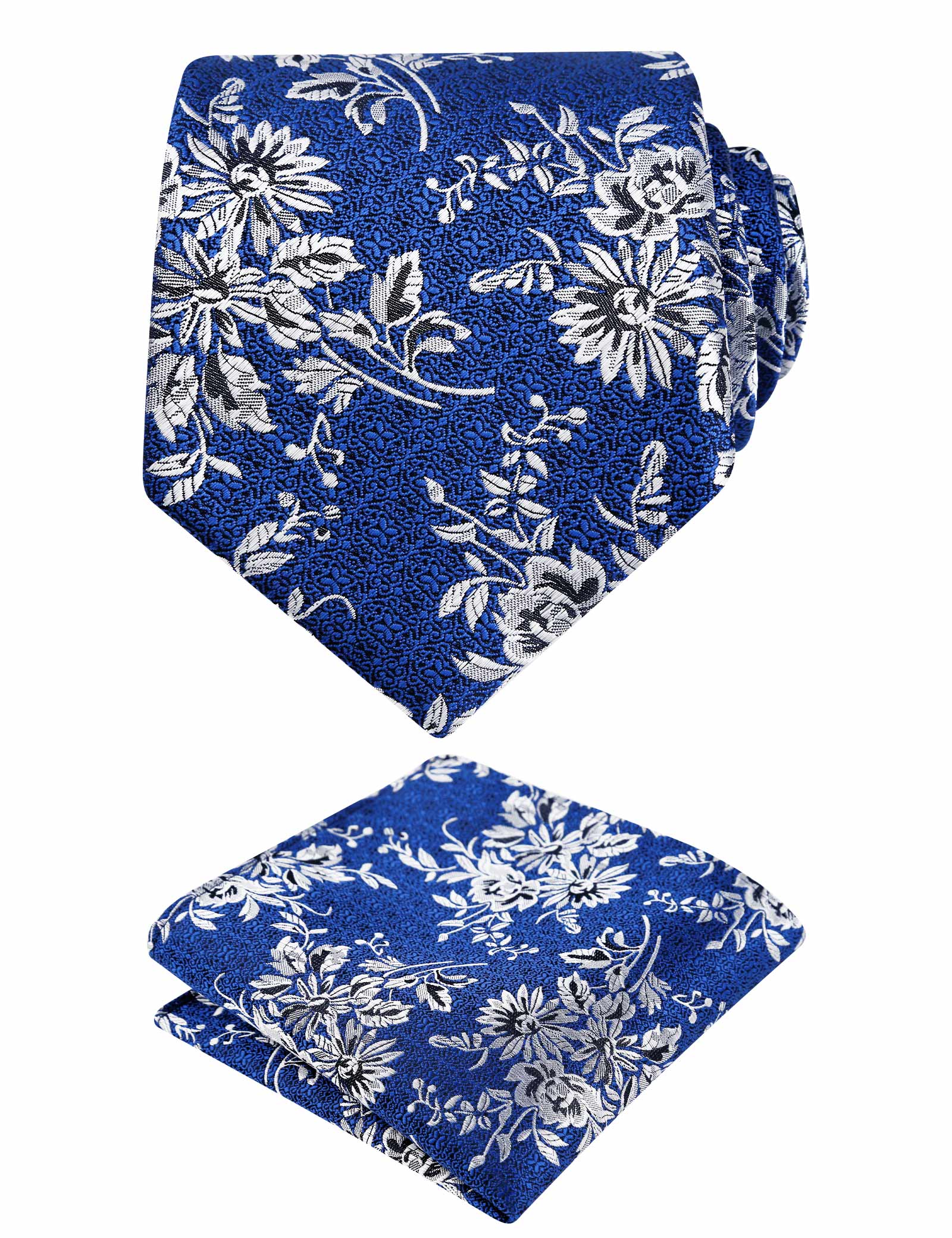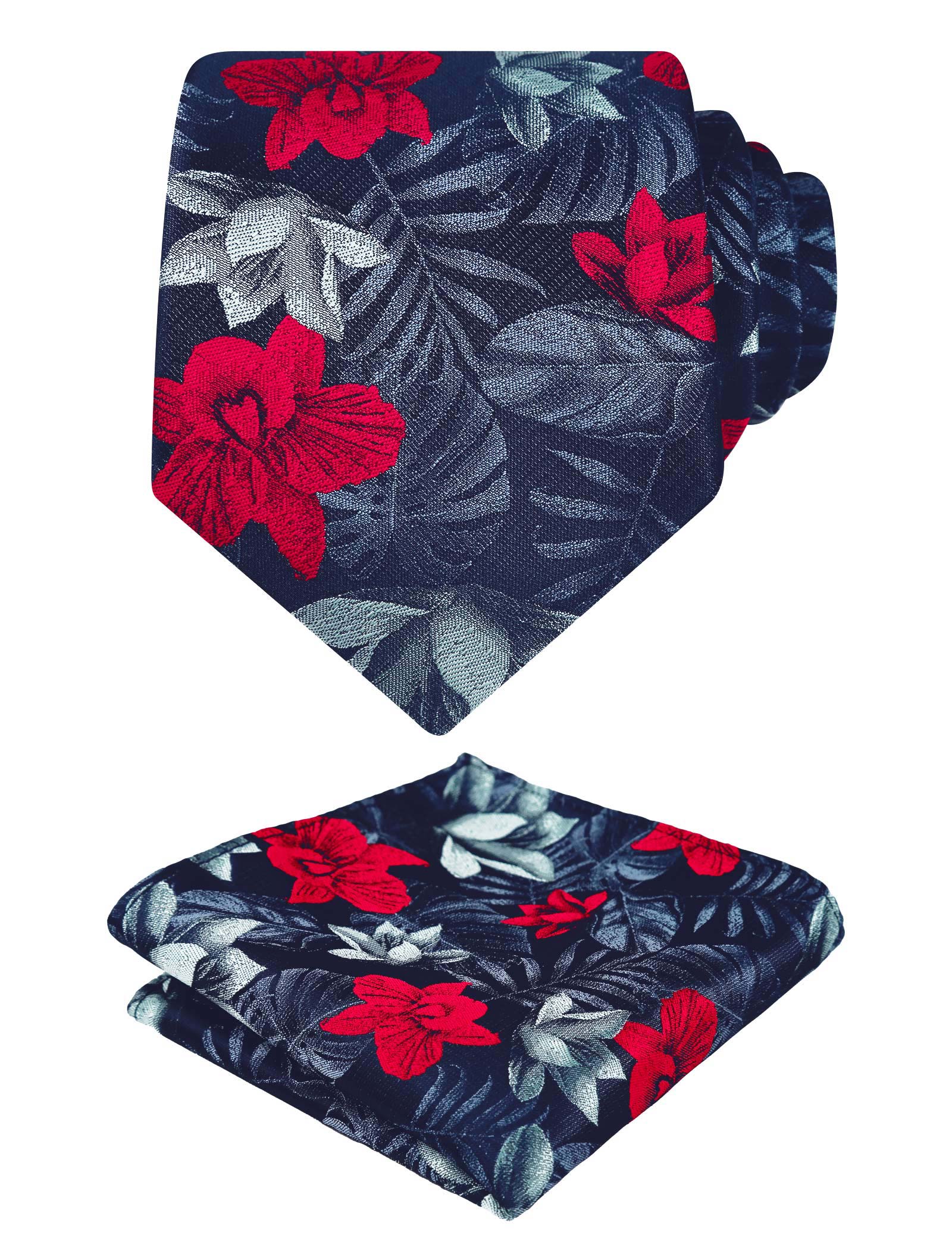 Herren-Krawatte mit Rosenblumenmuster, 8 cm, mit Einstecktuch mit Blumenmuster, Set, 145