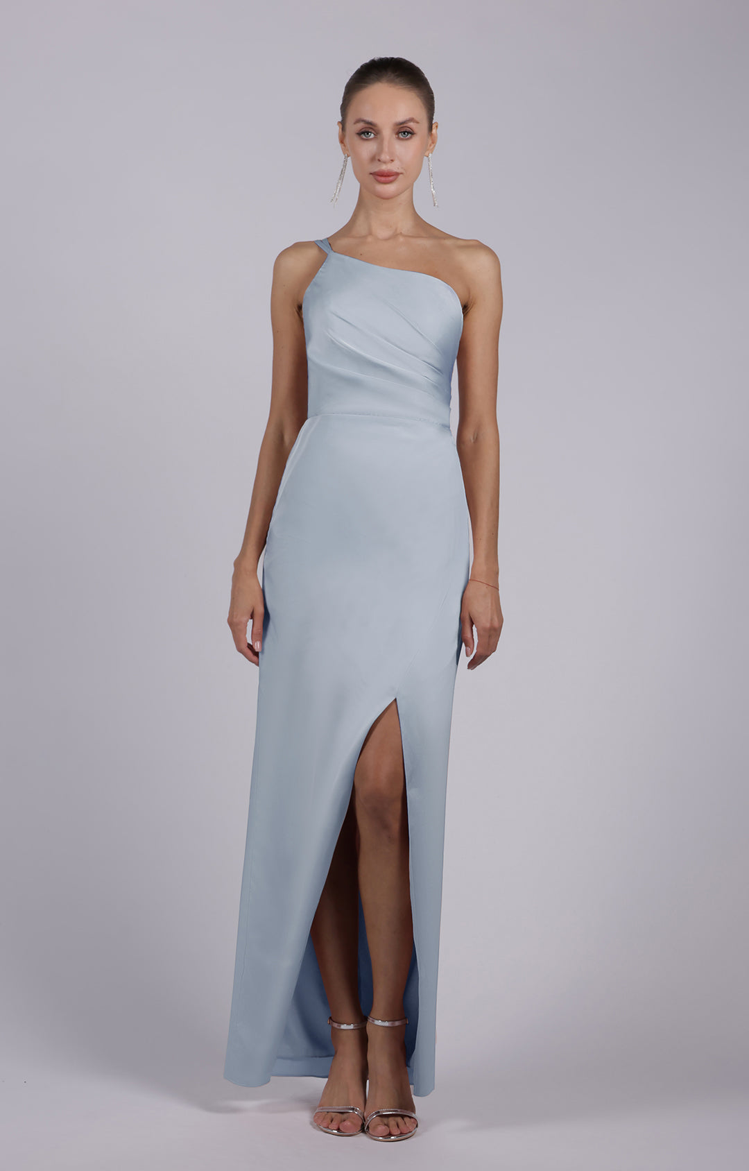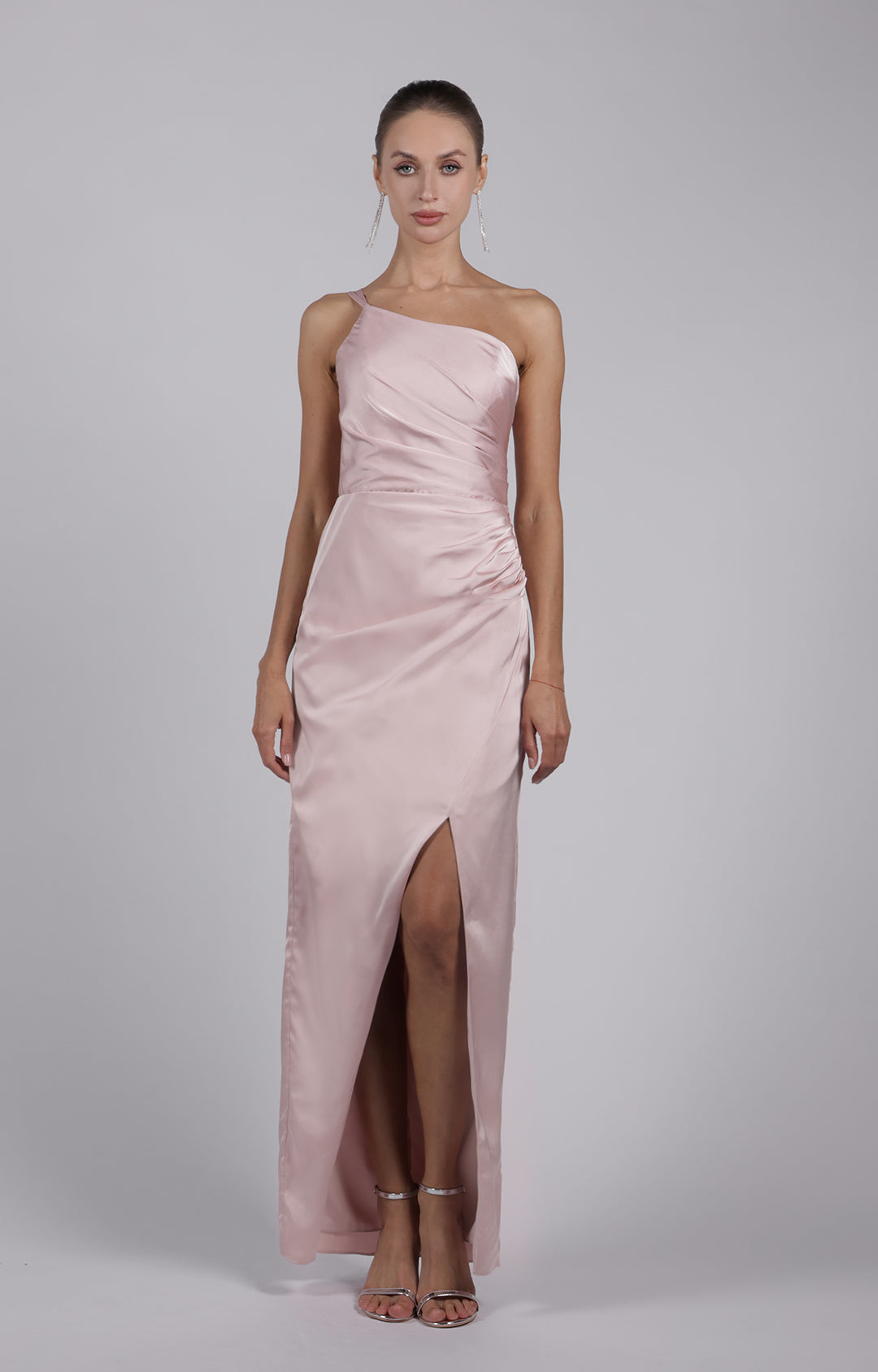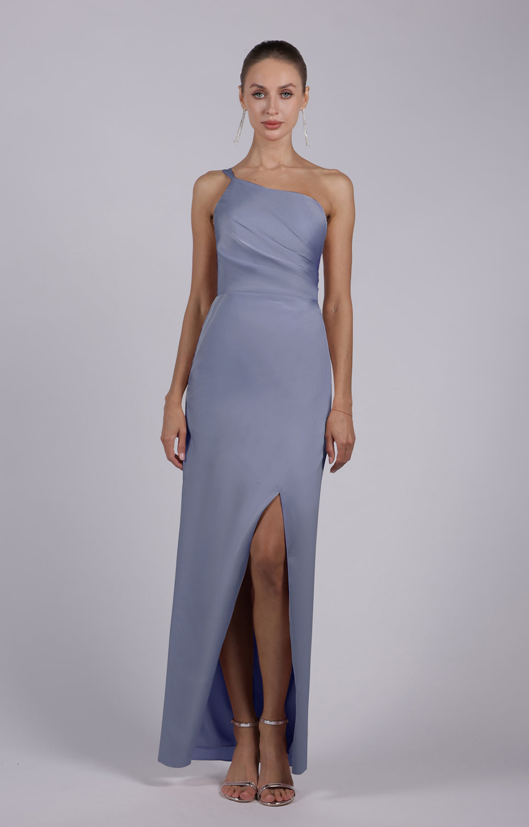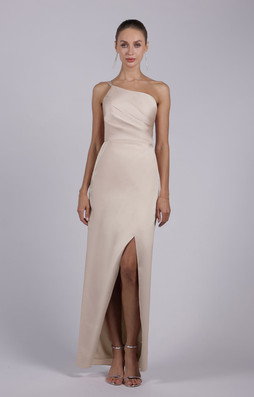 Einschultriges Maxikleid mit Spaghettiträgern und Schlitz vorne