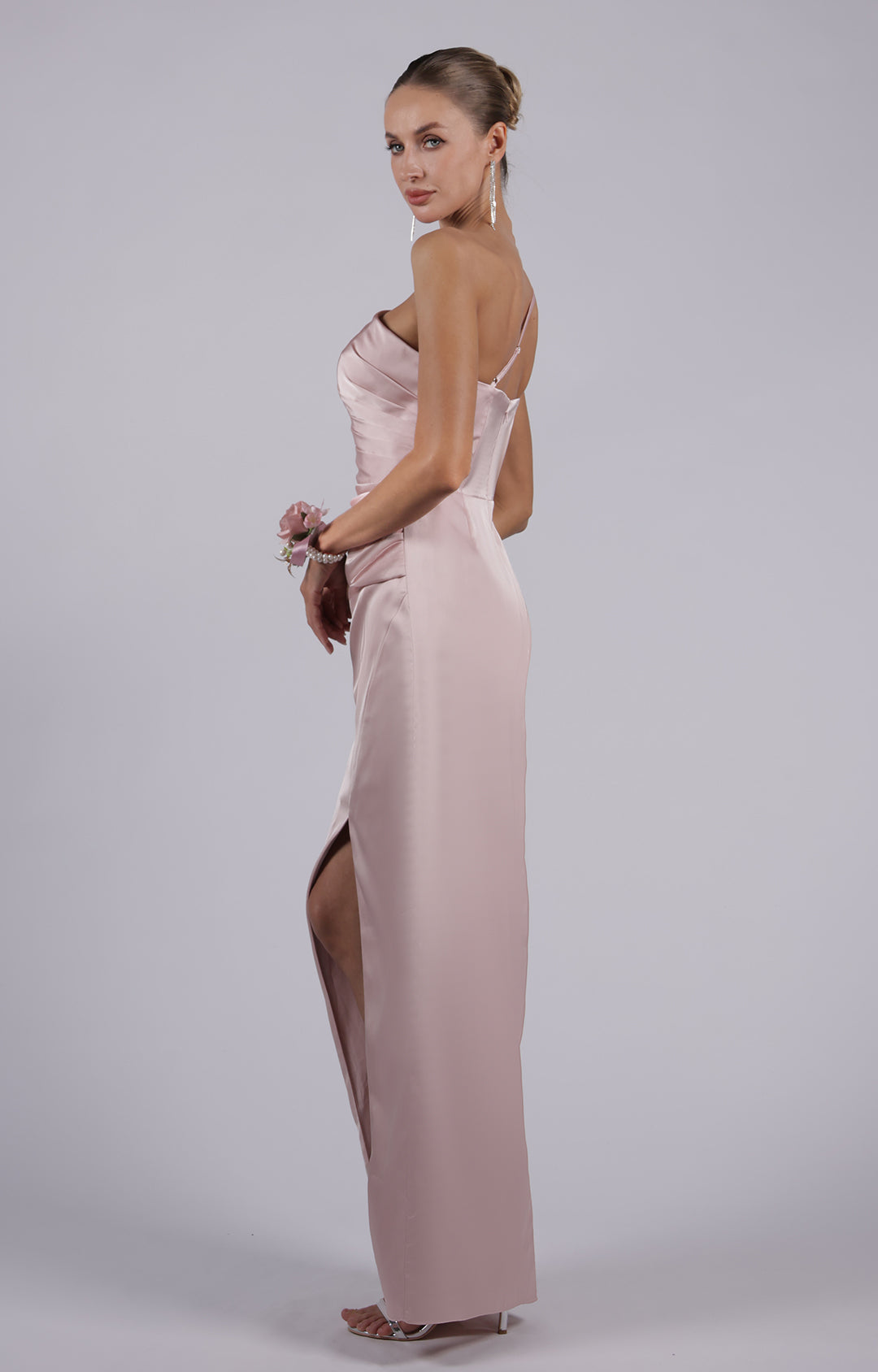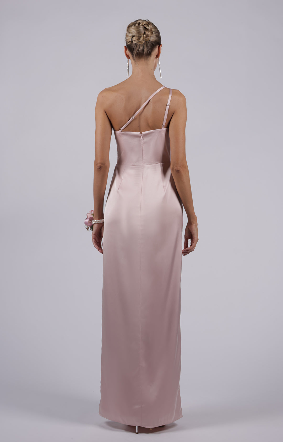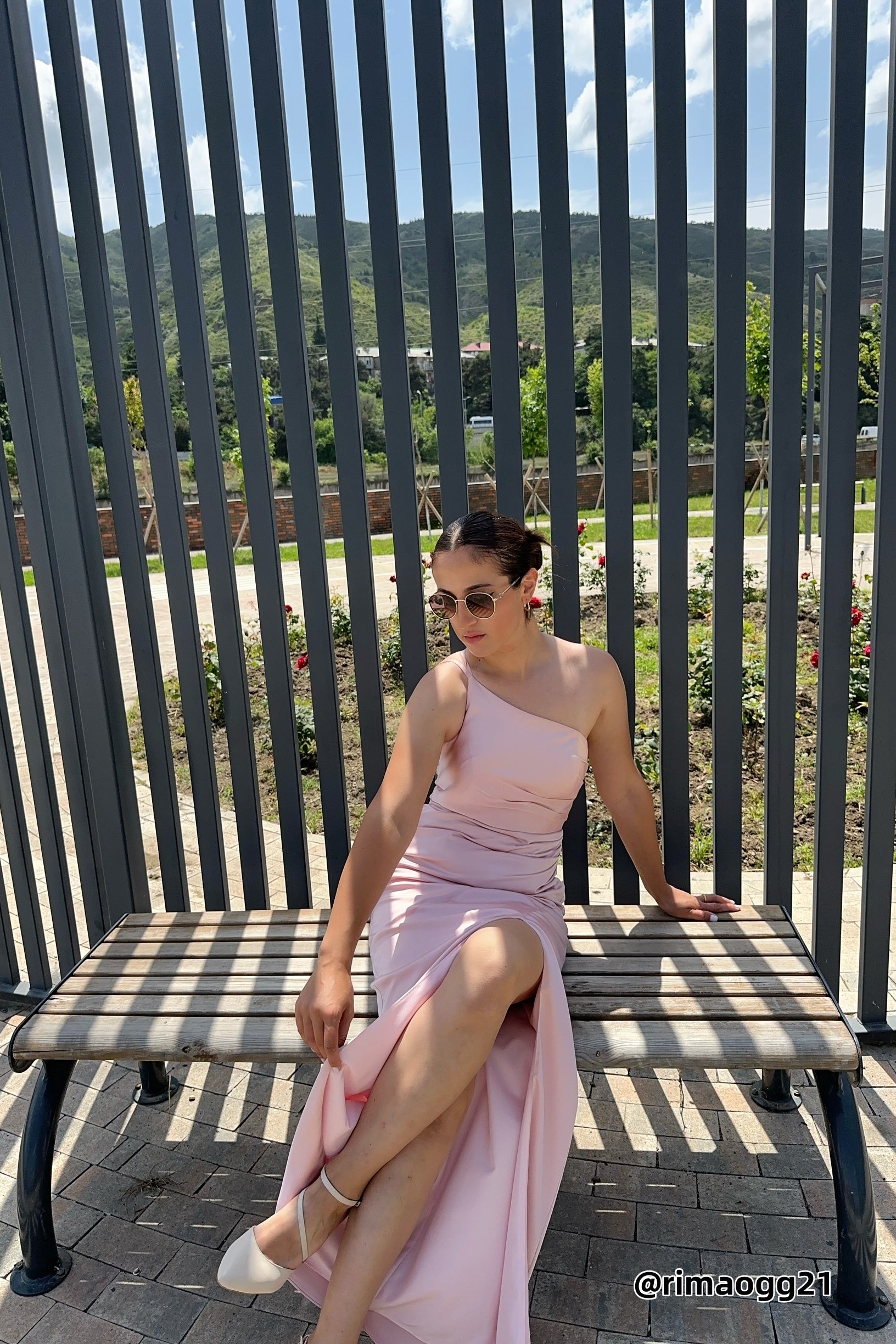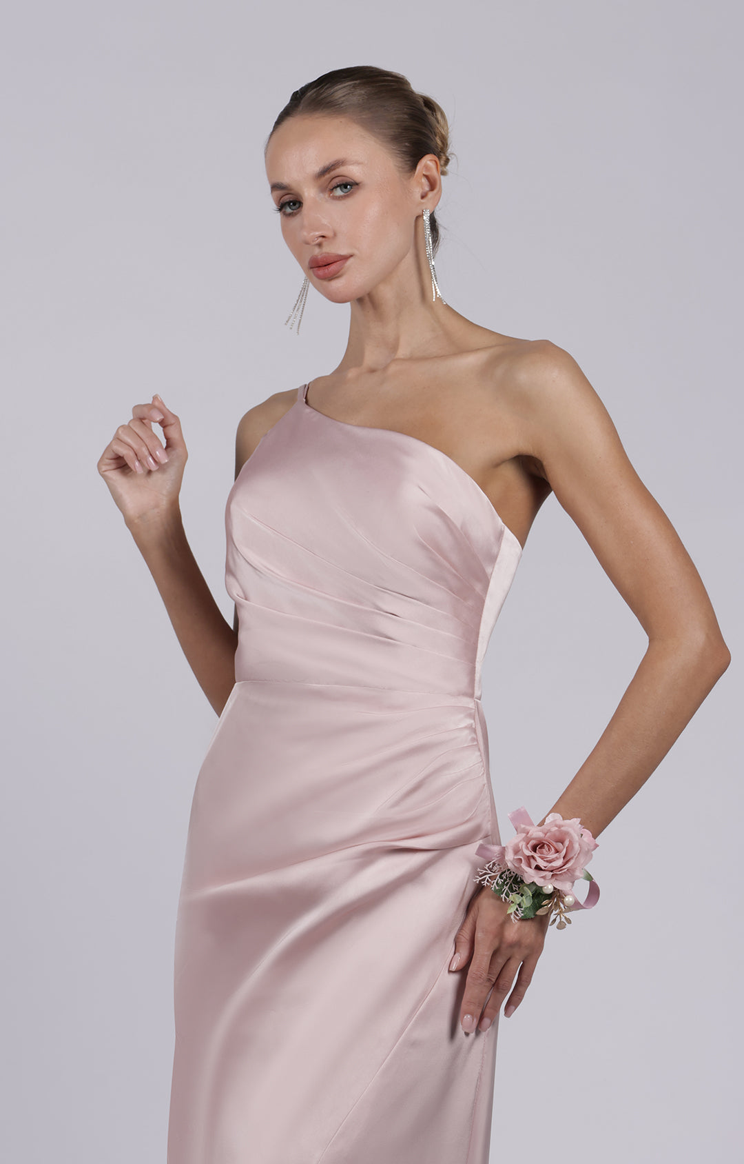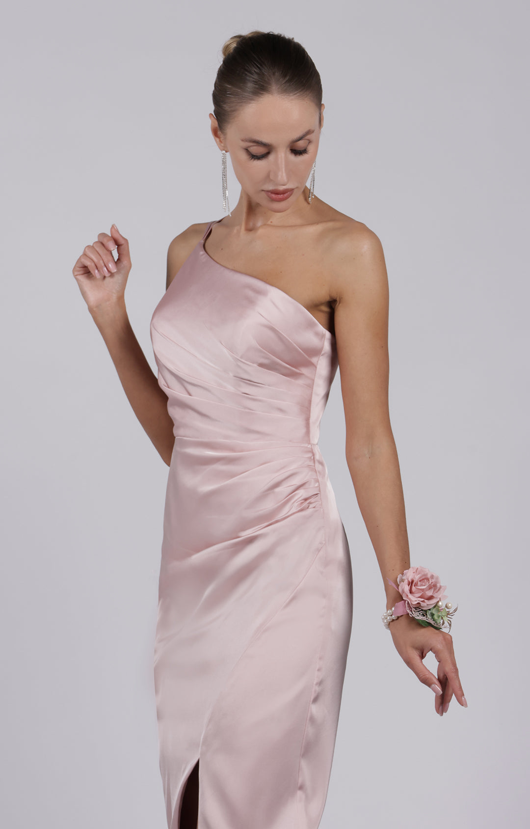 Einschultriges Maxikleid mit Spaghettiträgern und Schlitz vorne