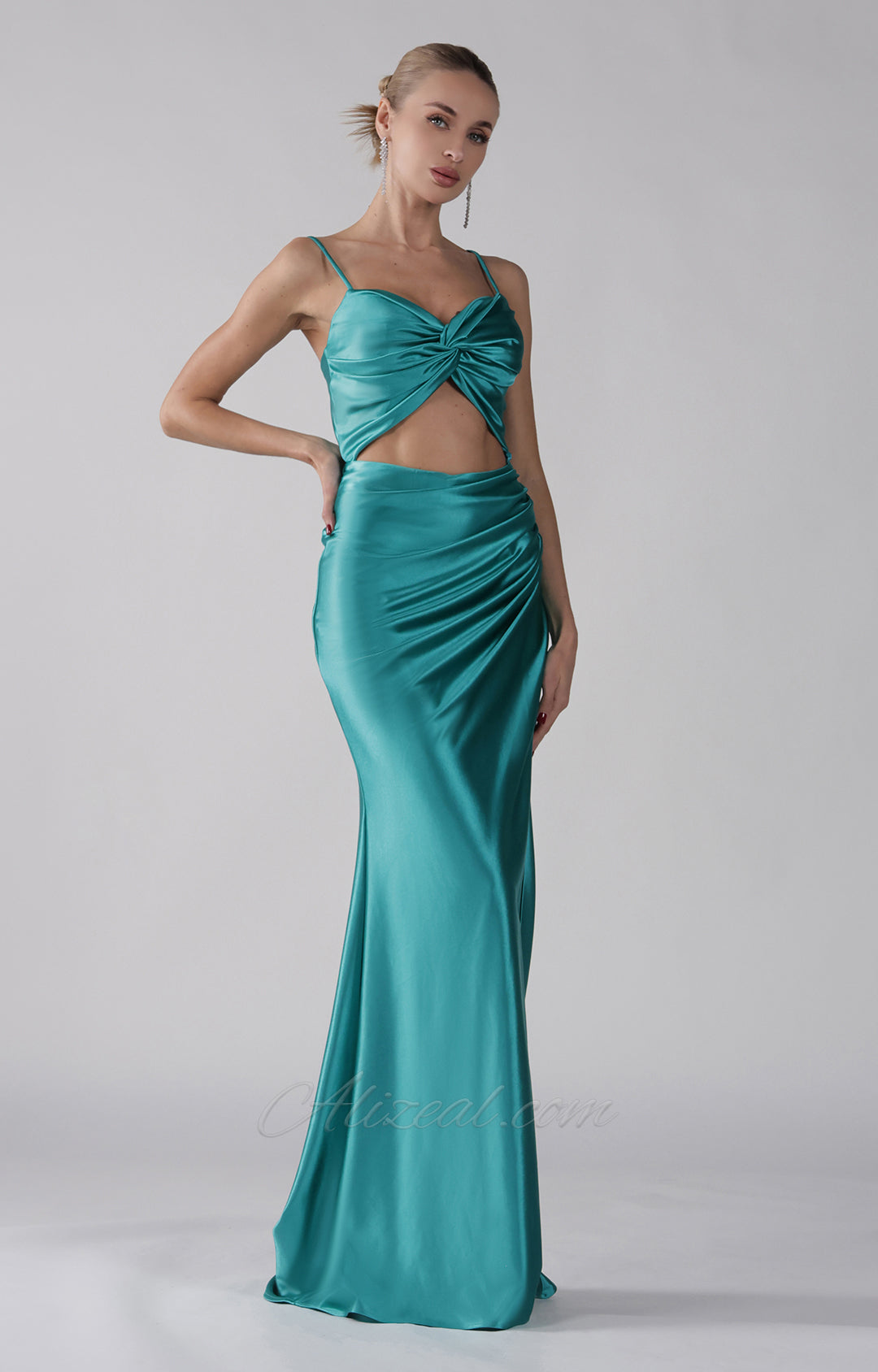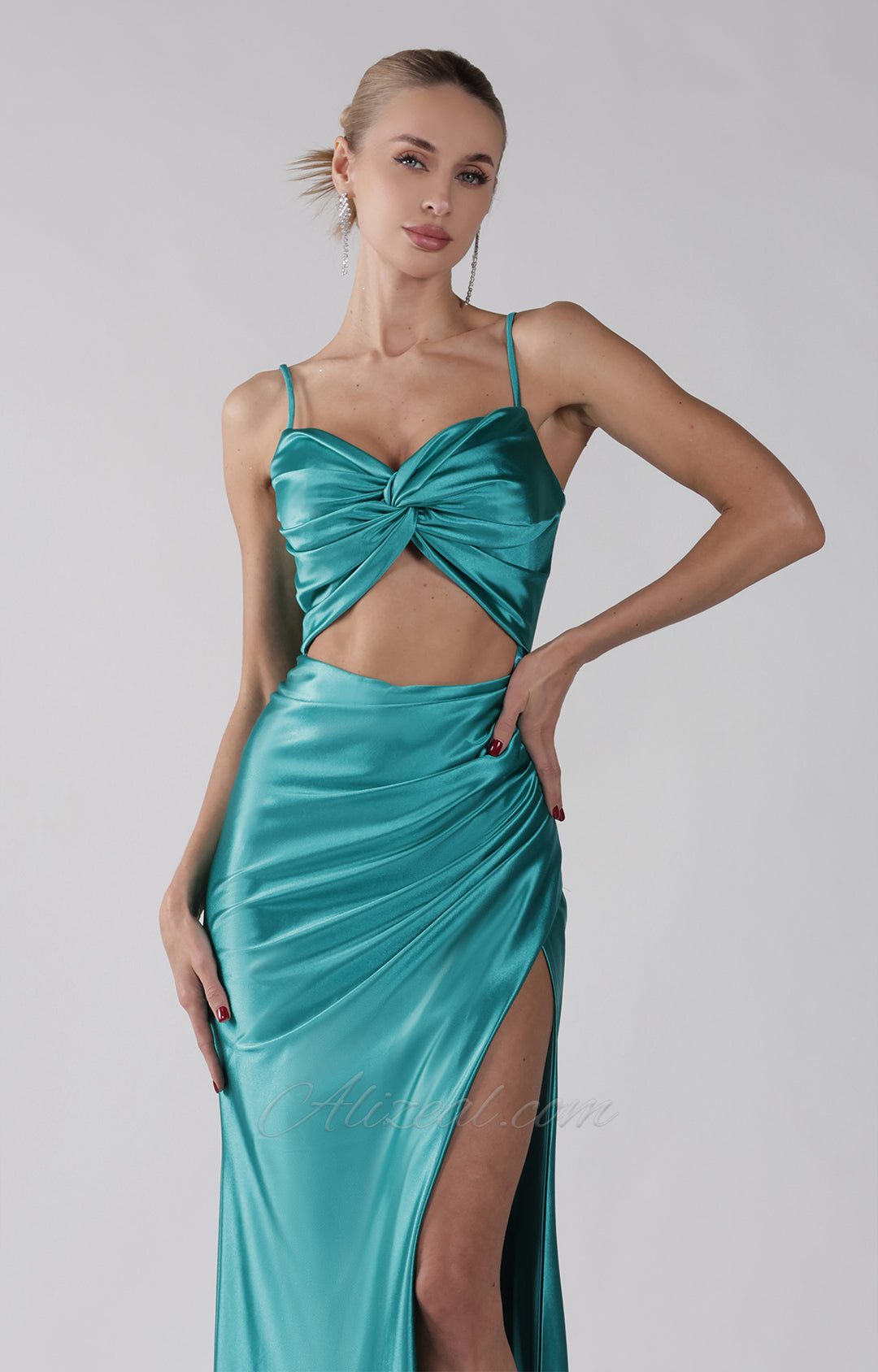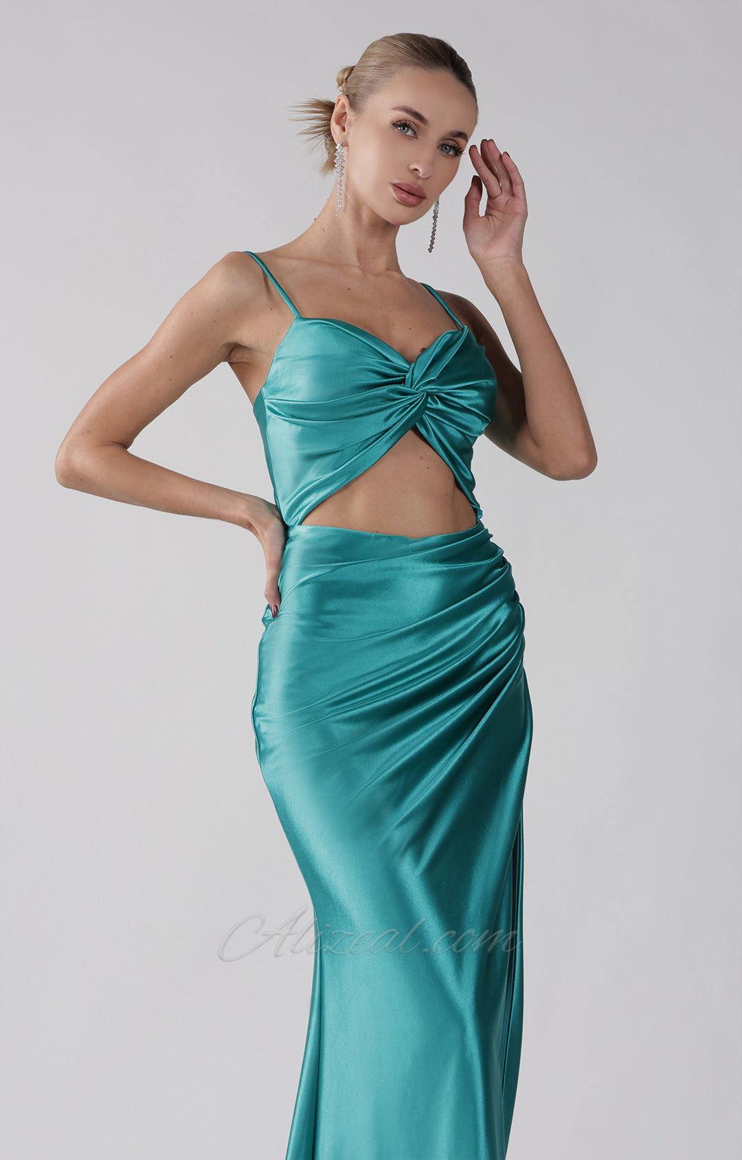 Ballkleid mit Cut-out, hohem Schlitz und Rüschen und Schleppe