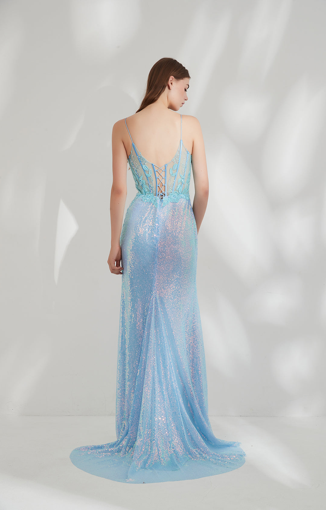 Tiefer V-Ausschnitt Spaghettiträger Tüll Durchsichtige Seiten Hoher Schlitz Ballkleider