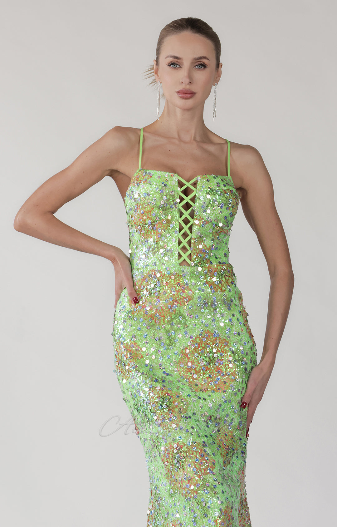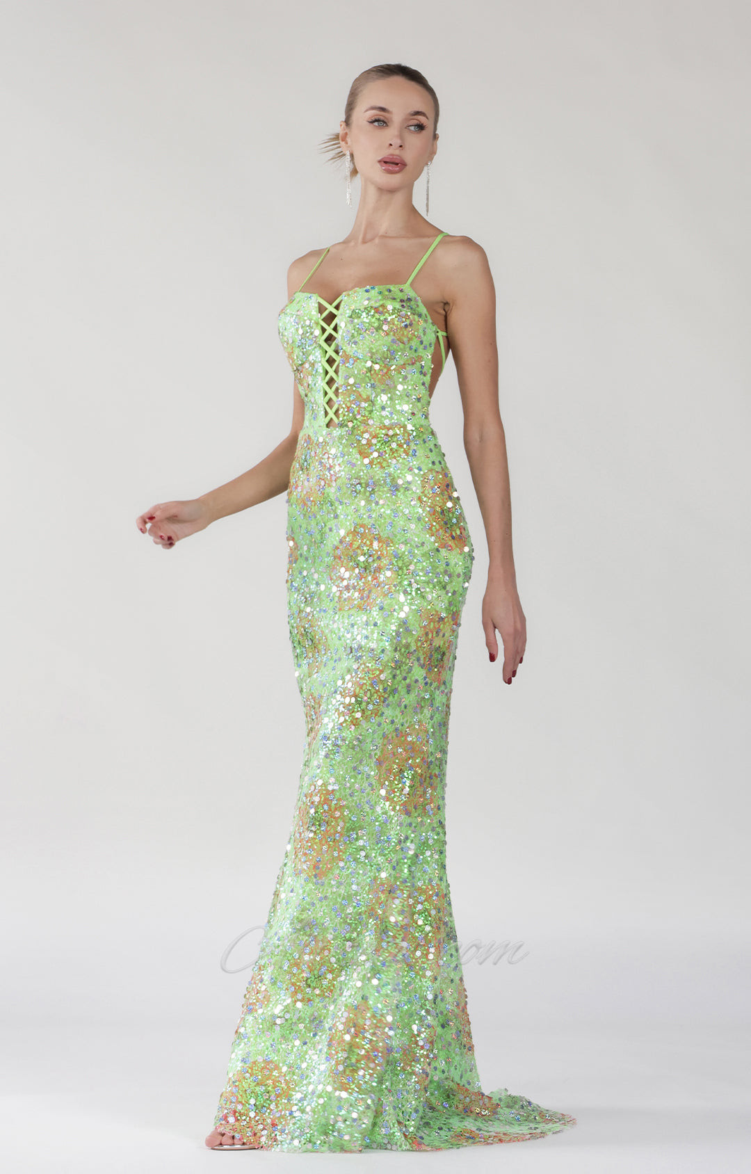 Glitzerndes, buntes Meerjungfrauenkleid mit Pailletten und Schnürung