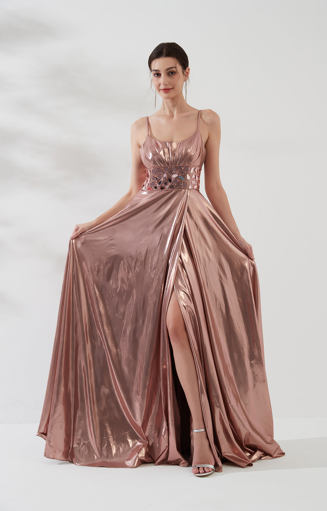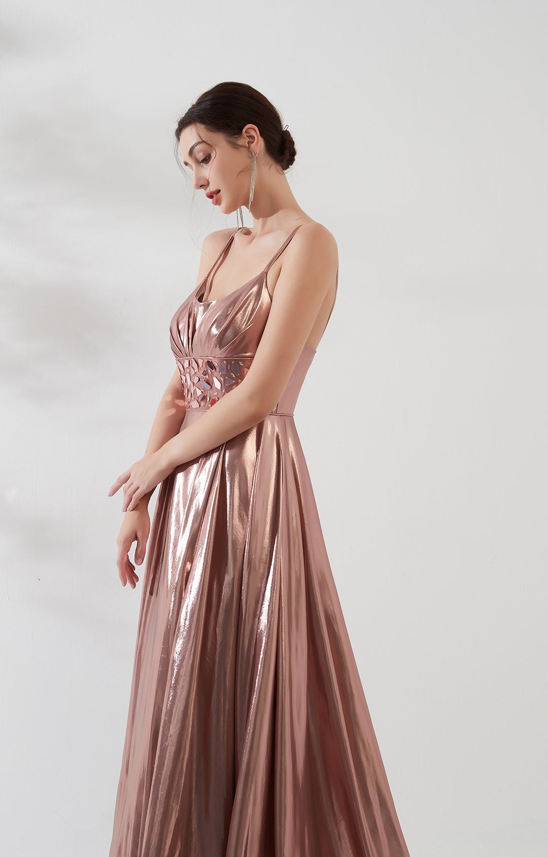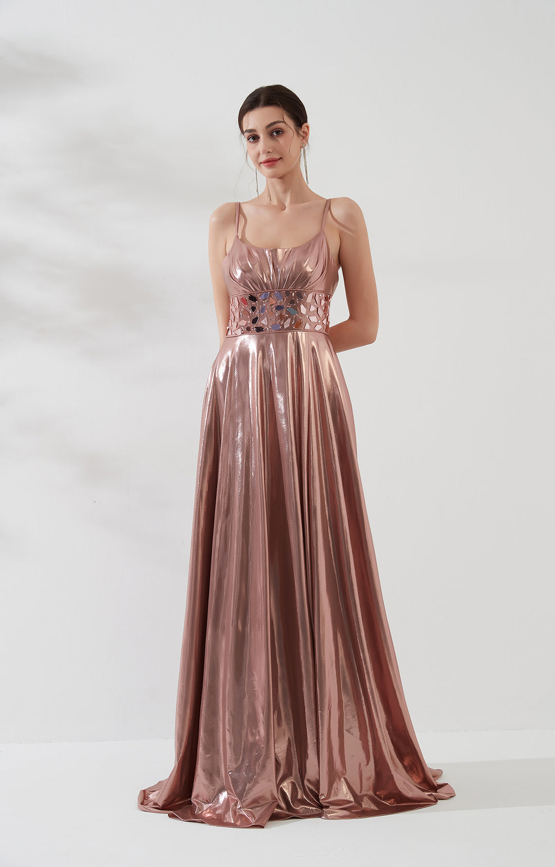 Kleider mit U-Ausschnitt, doppelten Spaghettiträgern, Perlen und Illusion-Pailletten