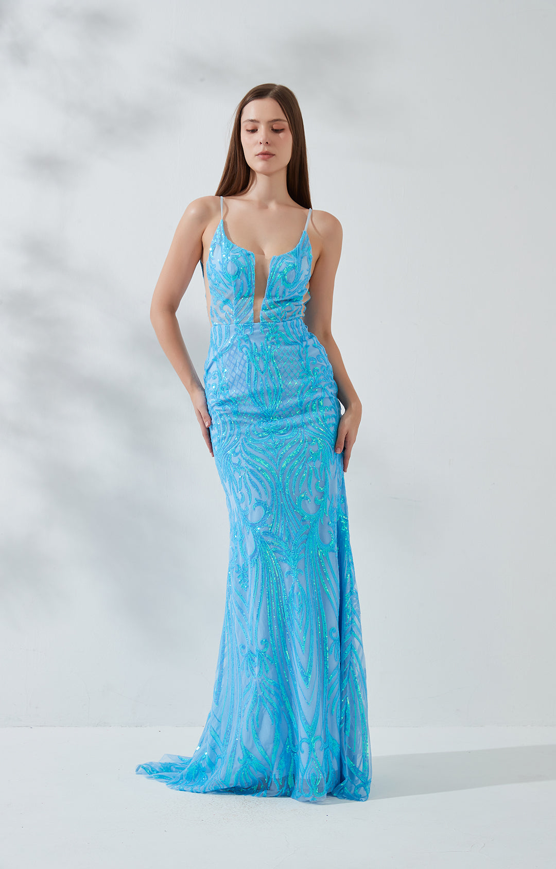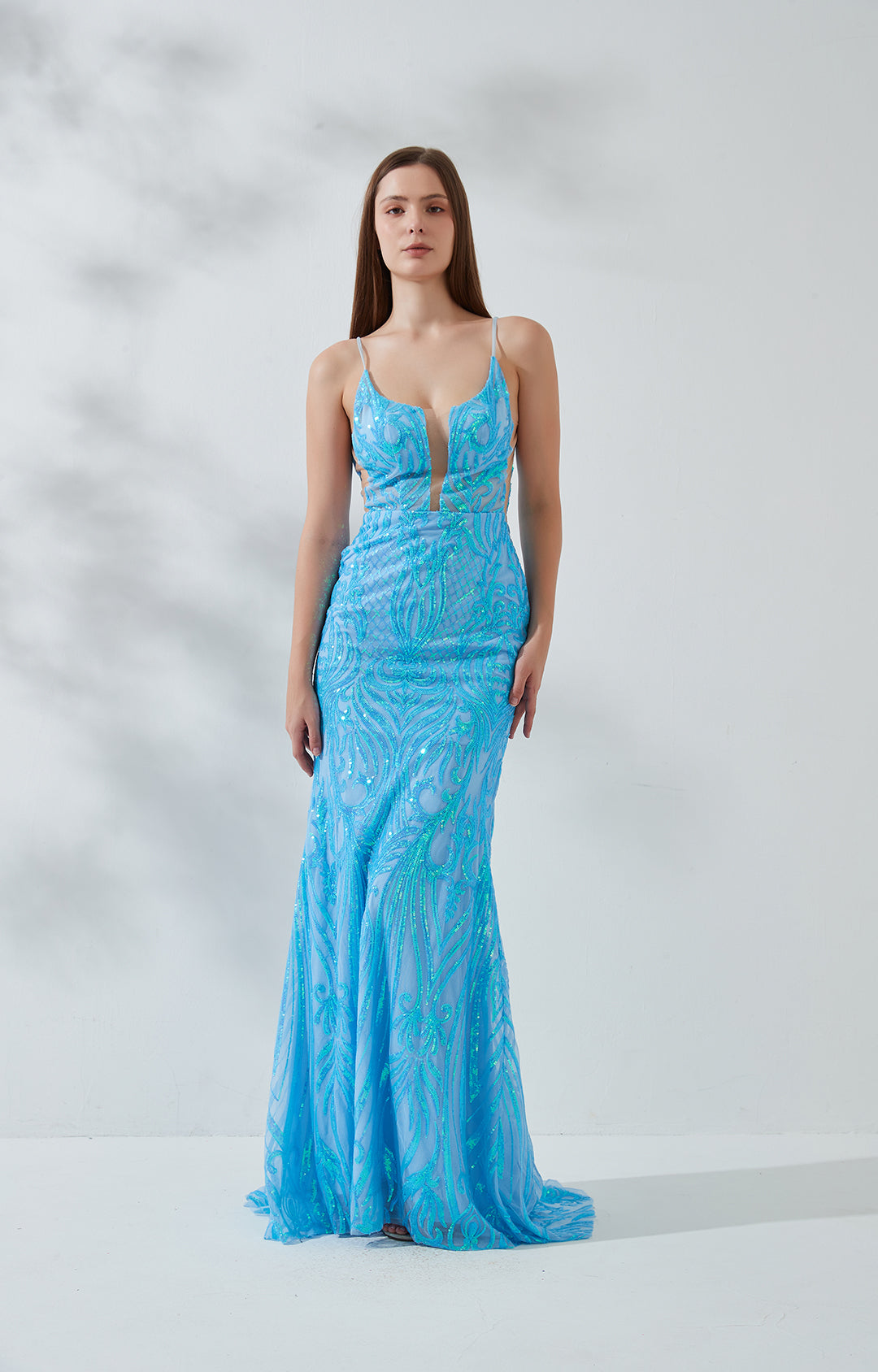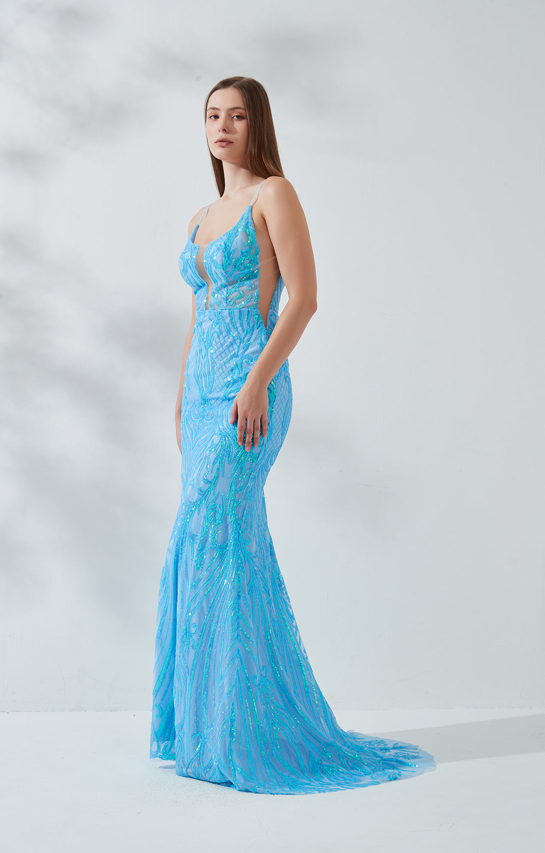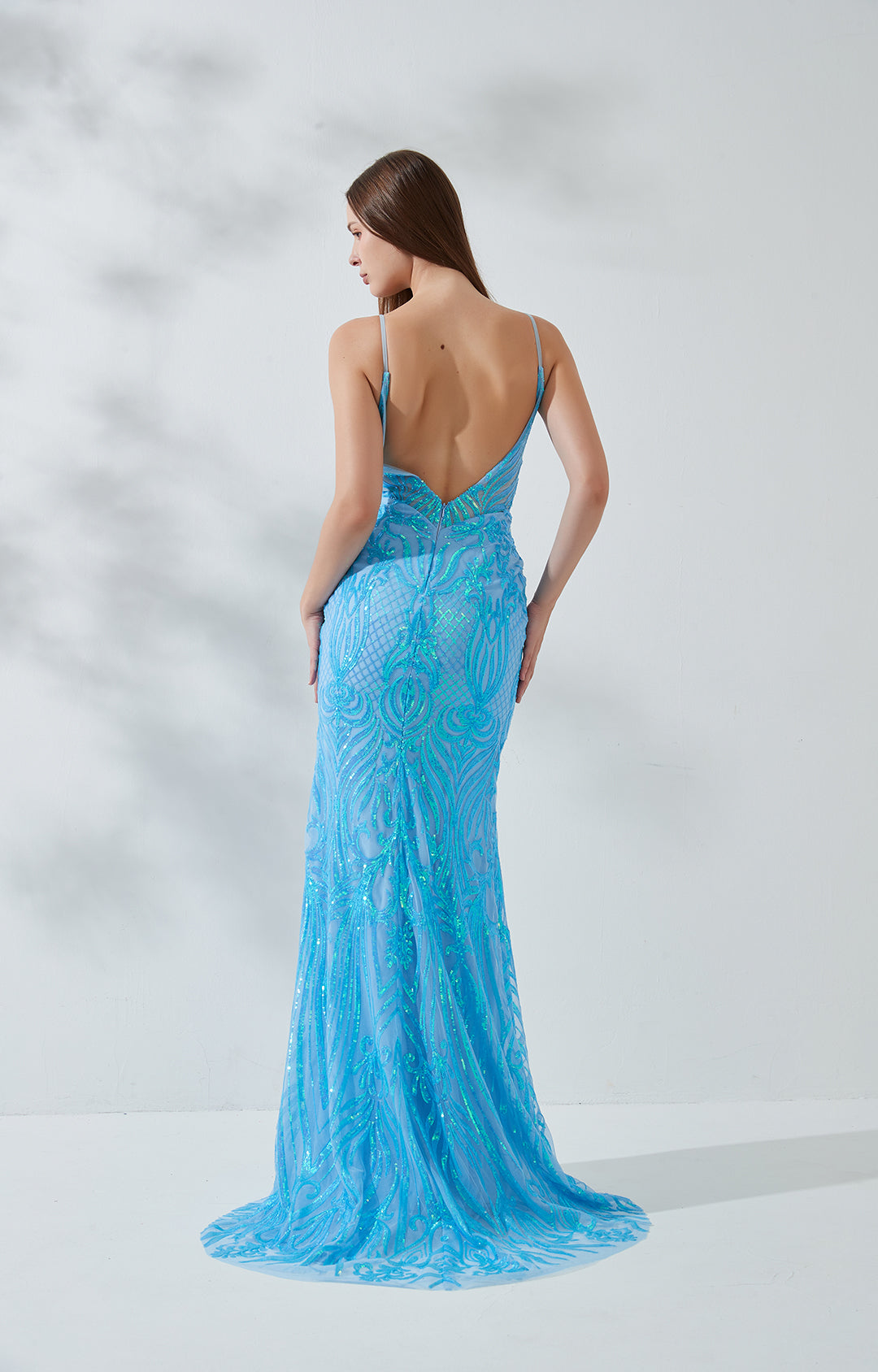 Ärmellose Paillettenstickerei Tiefes V-Ausschnitt Rückenfreies Meerjungfrau-Abendkleid