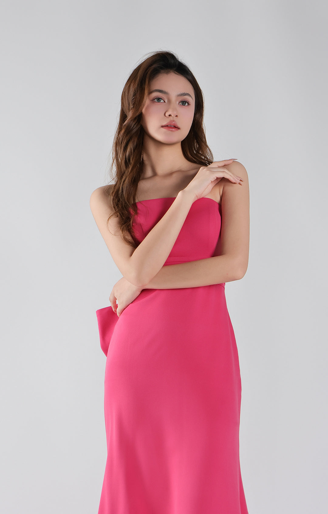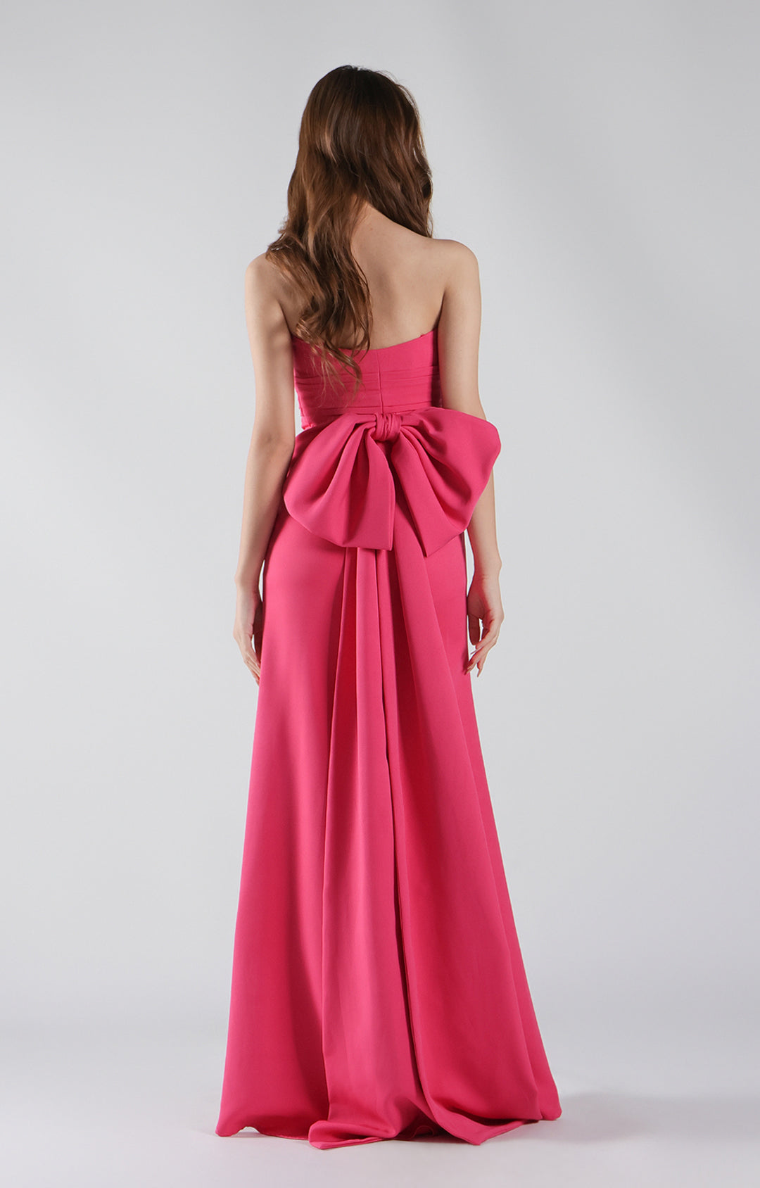 Trägerloses Etuikleid mit Schleife und Wickeldesign und Fischschwanz