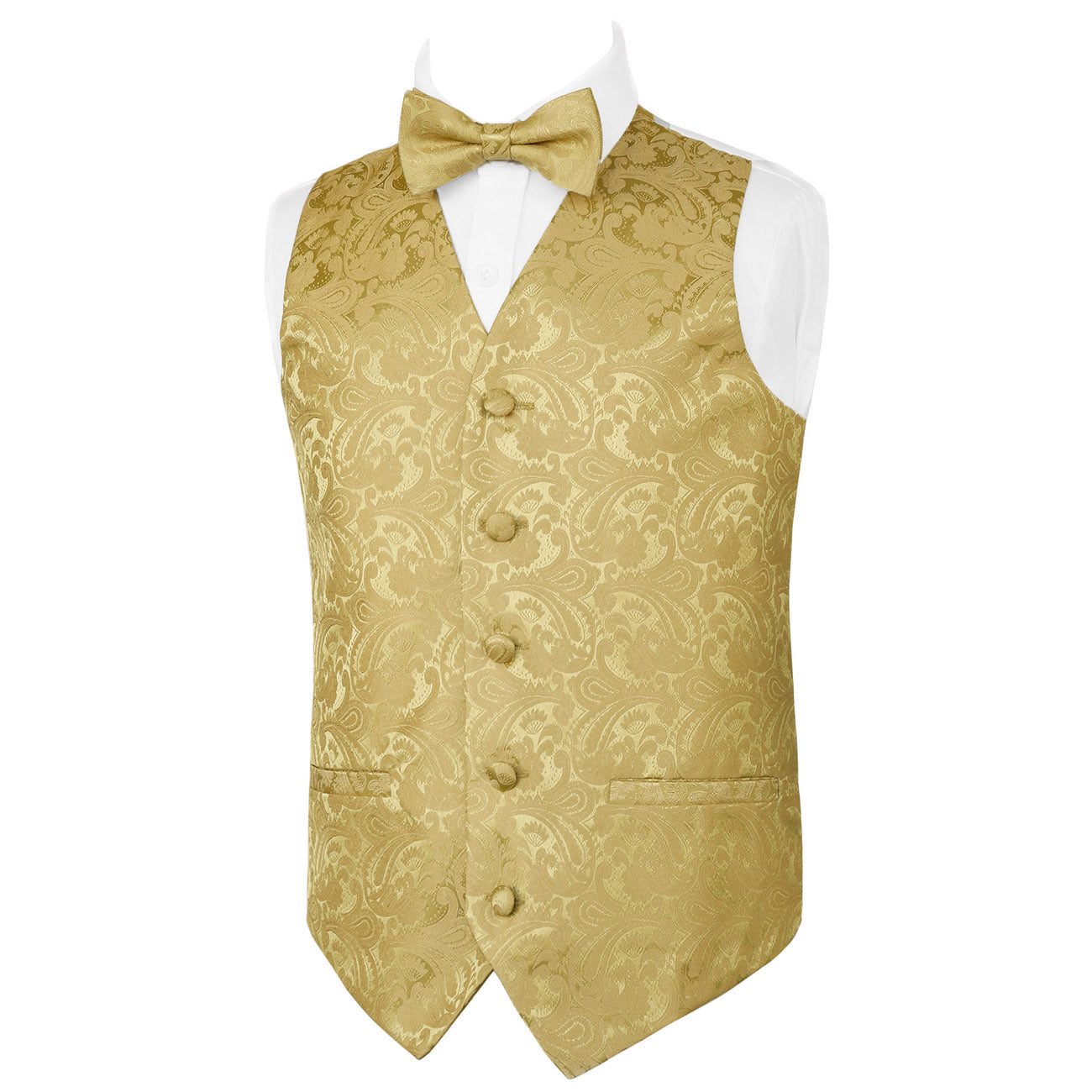 Klassisches Paisley-Set aus Fliege und Anzugweste für Jungen, 079-Golden Olive