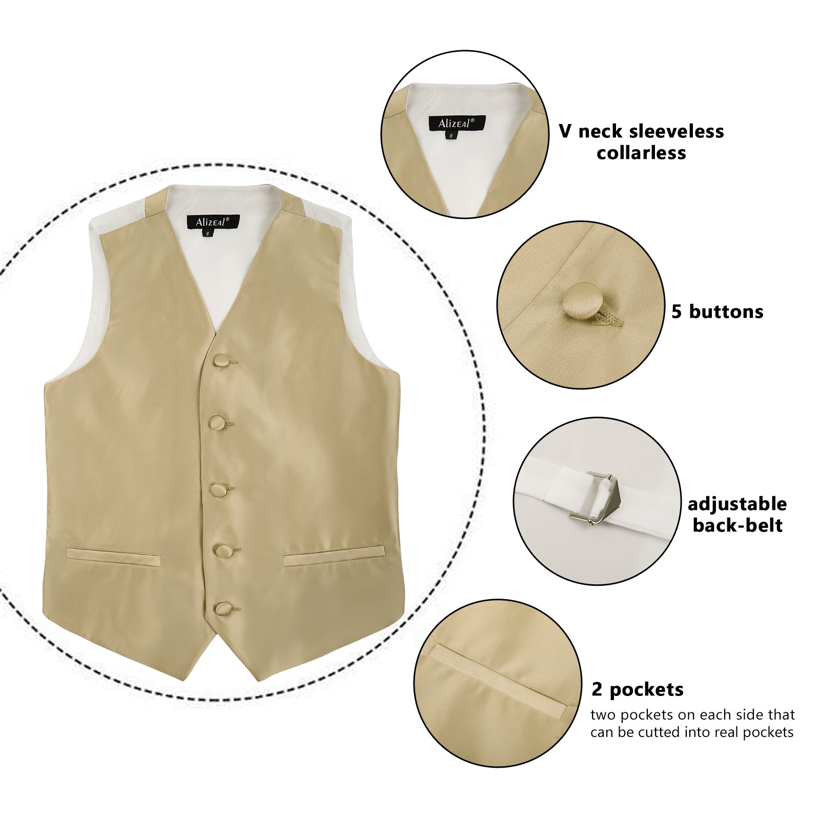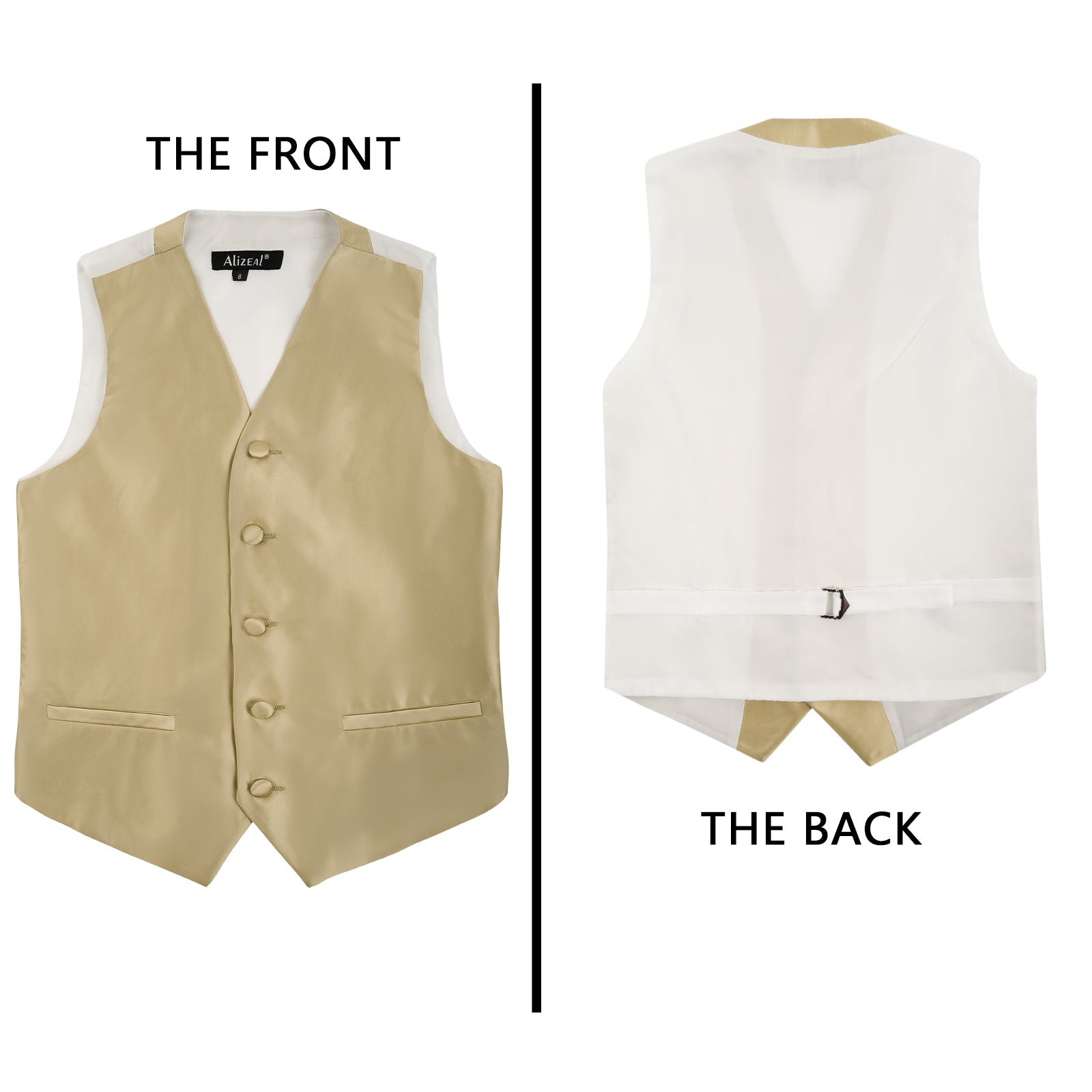 Klassisches, einfarbiges Set aus Fliege, Krawatte und Anzugweste für Jungen, 078-Champagner