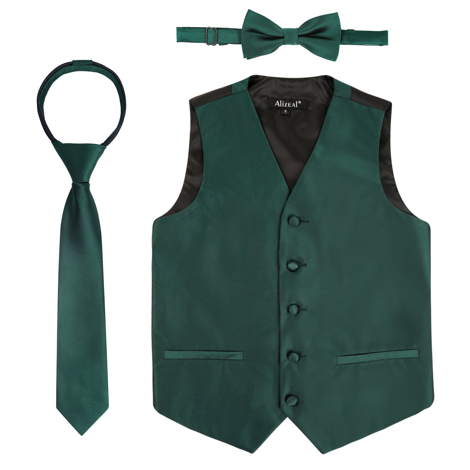 Klassisches, einfarbiges Set aus Fliege, Krawatte und Anzugweste für Jungen, 078-Dunkelgrün