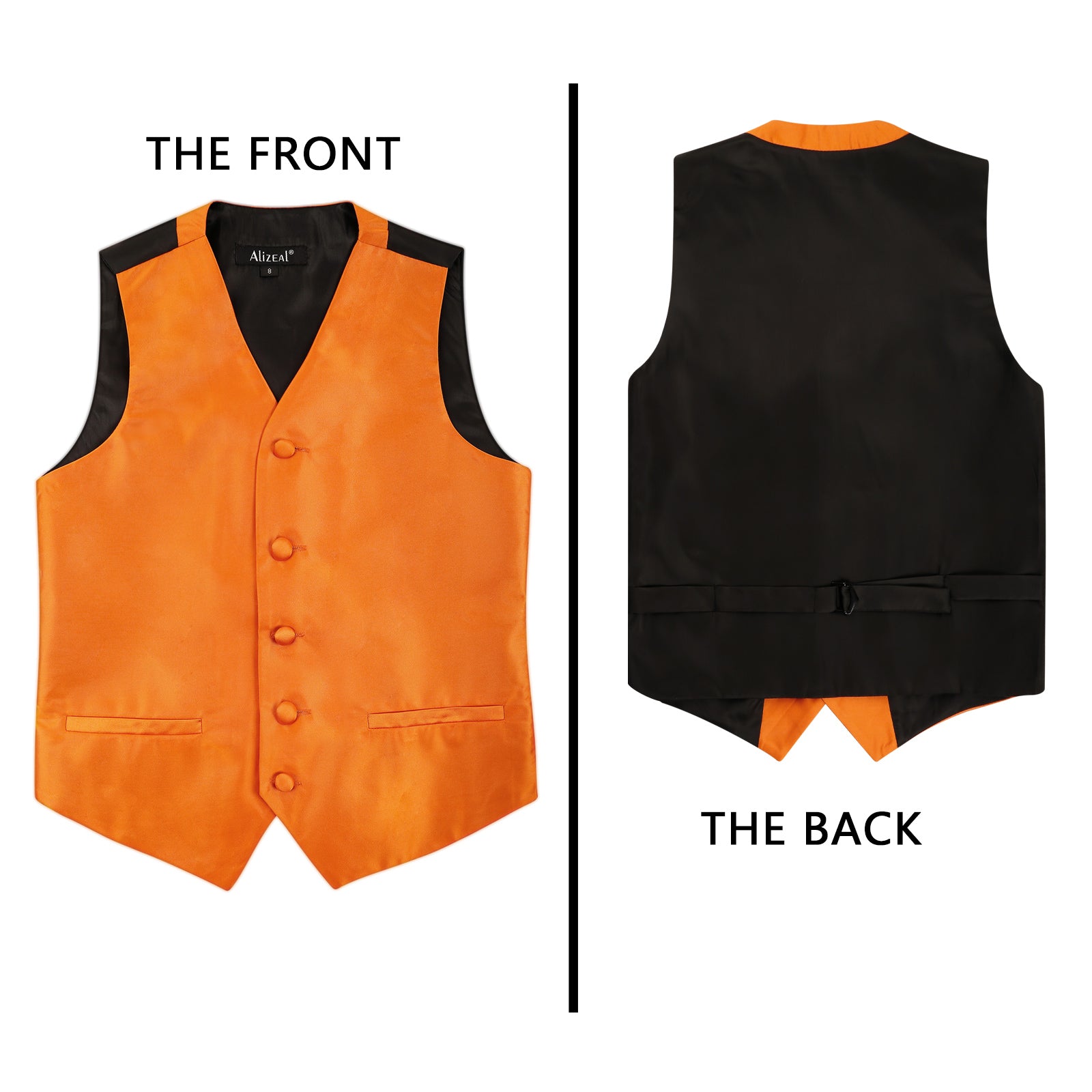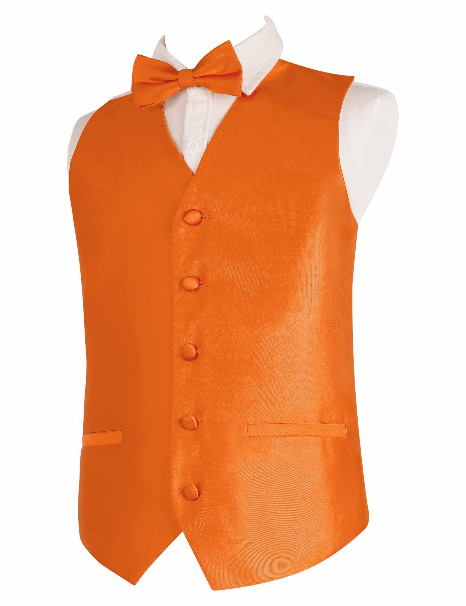 Klassisches, einfarbiges Set aus Fliege, Krawatte und Anzugweste für Jungen, 078-Orange