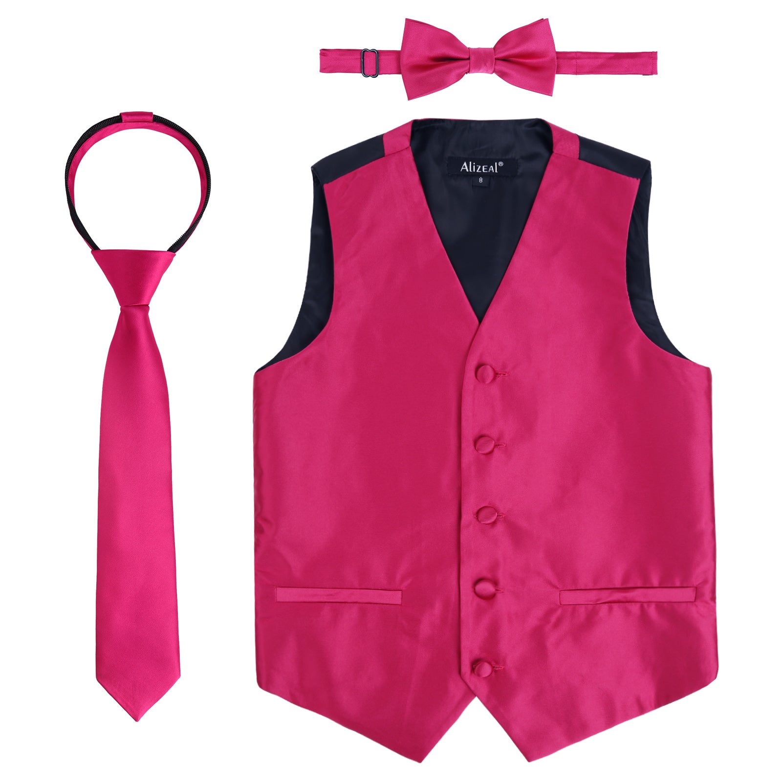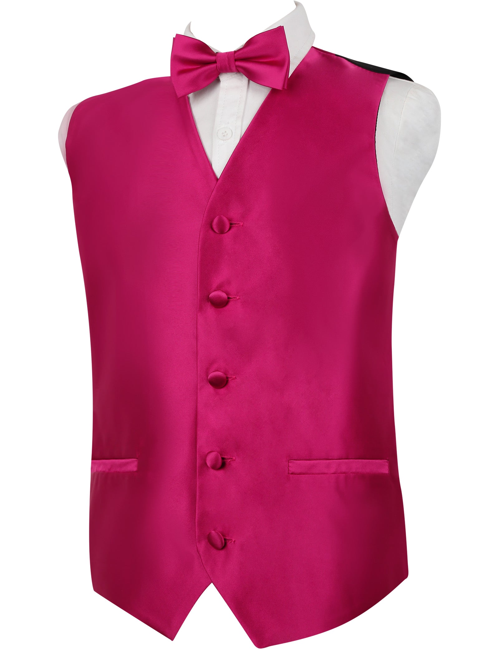 Klassisches, einfarbiges Set aus Fliege, Krawatte und Anzugweste für Jungen, 078-Rosenrot