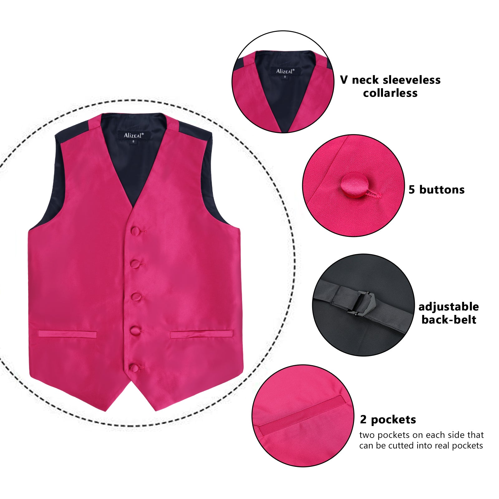- DESIGN: Die Anzugweste mit V-Ausschnitt ist in klassischer Unifarbe gestaltet und verfügt über zwei Taschen auf jeder Seite, die zu echten Taschen umfunktioniert werden können. Reißverschluss zum Festziehen der Krawatte – sehr praktisches Design. Vorgebundene Jungenfliegen mit verstellbarem Stehkragen sind speziell für Jungen gedacht, die noch nicht wissen, wie man bindet, oder für vielbeschäftigte Jungen mit viel Arbeit.