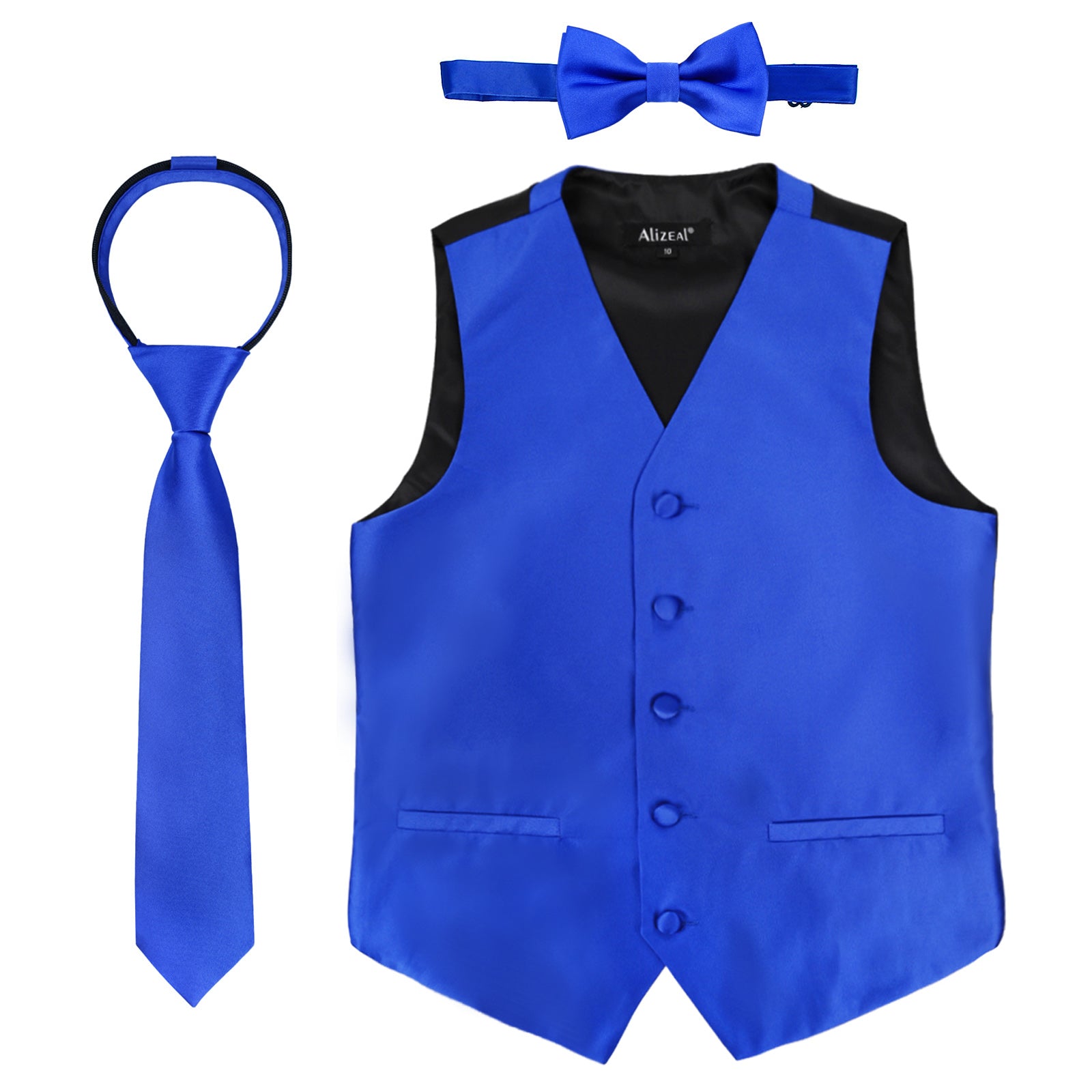 Klassisches, einfarbiges Set aus Fliege, Krawatte und Anzugweste für Jungen, 078-Königsblau