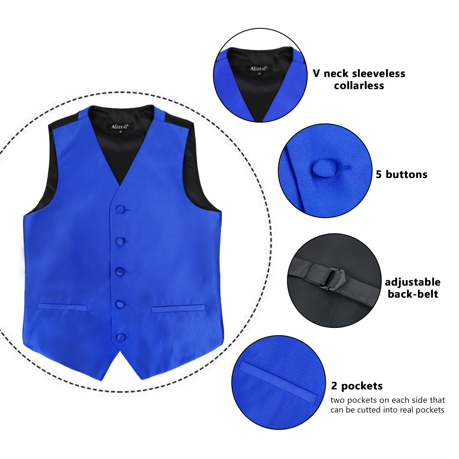 - DESIGN: Die Anzugweste mit V-Ausschnitt ist in klassischer Unifarbe gestaltet und verfügt über zwei Taschen auf jeder Seite, die zu echten Taschen umfunktioniert werden können. Reißverschluss zum Festziehen der Krawatte – sehr praktisches Design. Vorgebundene Jungenfliegen mit verstellbarem Stehkragen sind speziell für Jungen gedacht, die noch nicht wissen, wie man bindet, oder für vielbeschäftigte Jungen mit viel Arbeit.
