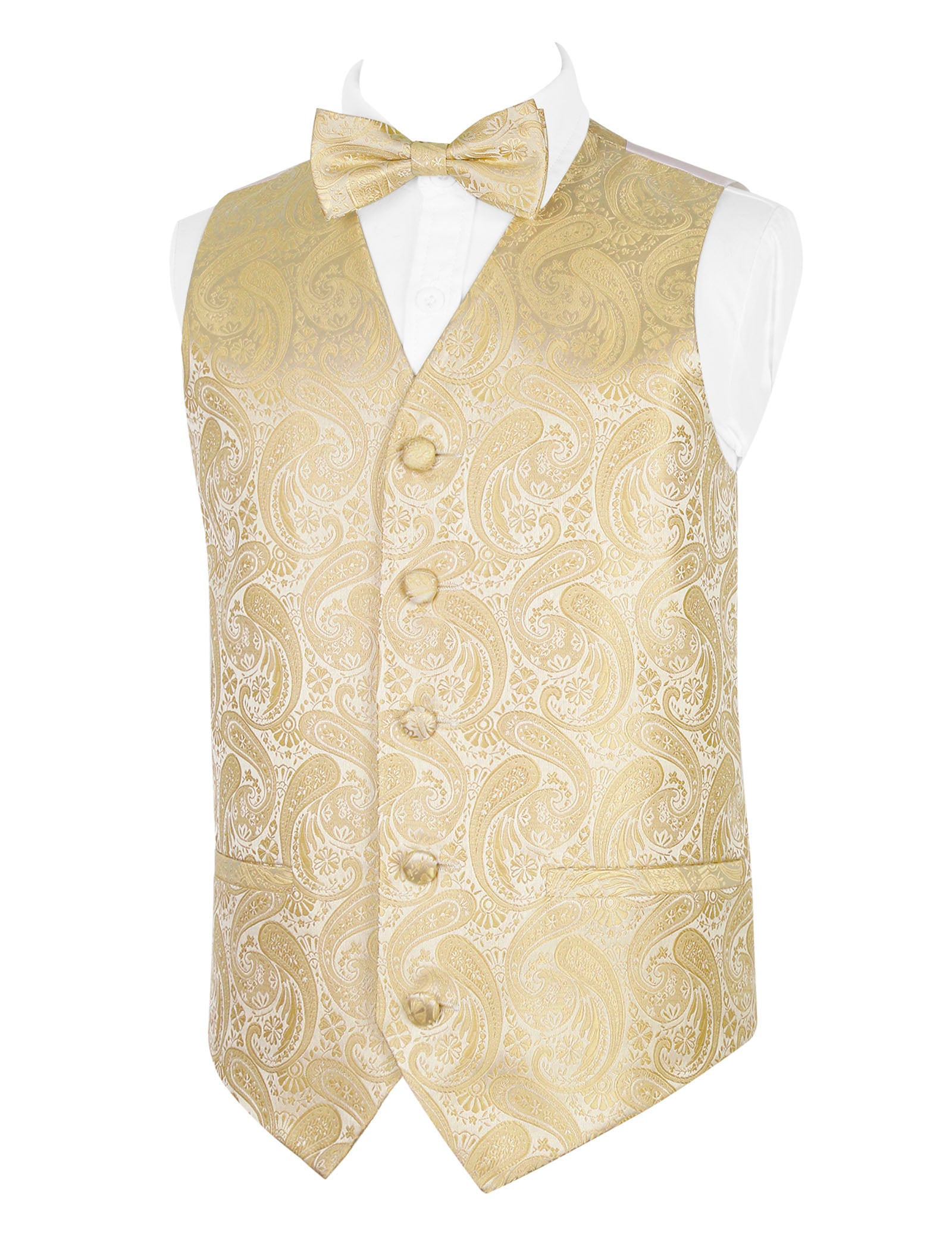Vorgebundene Fliege mit Paisley-Jacquardmuster und klassischer Anzugweste im Blumenmuster-Set für Jungen, 077-Champagner
