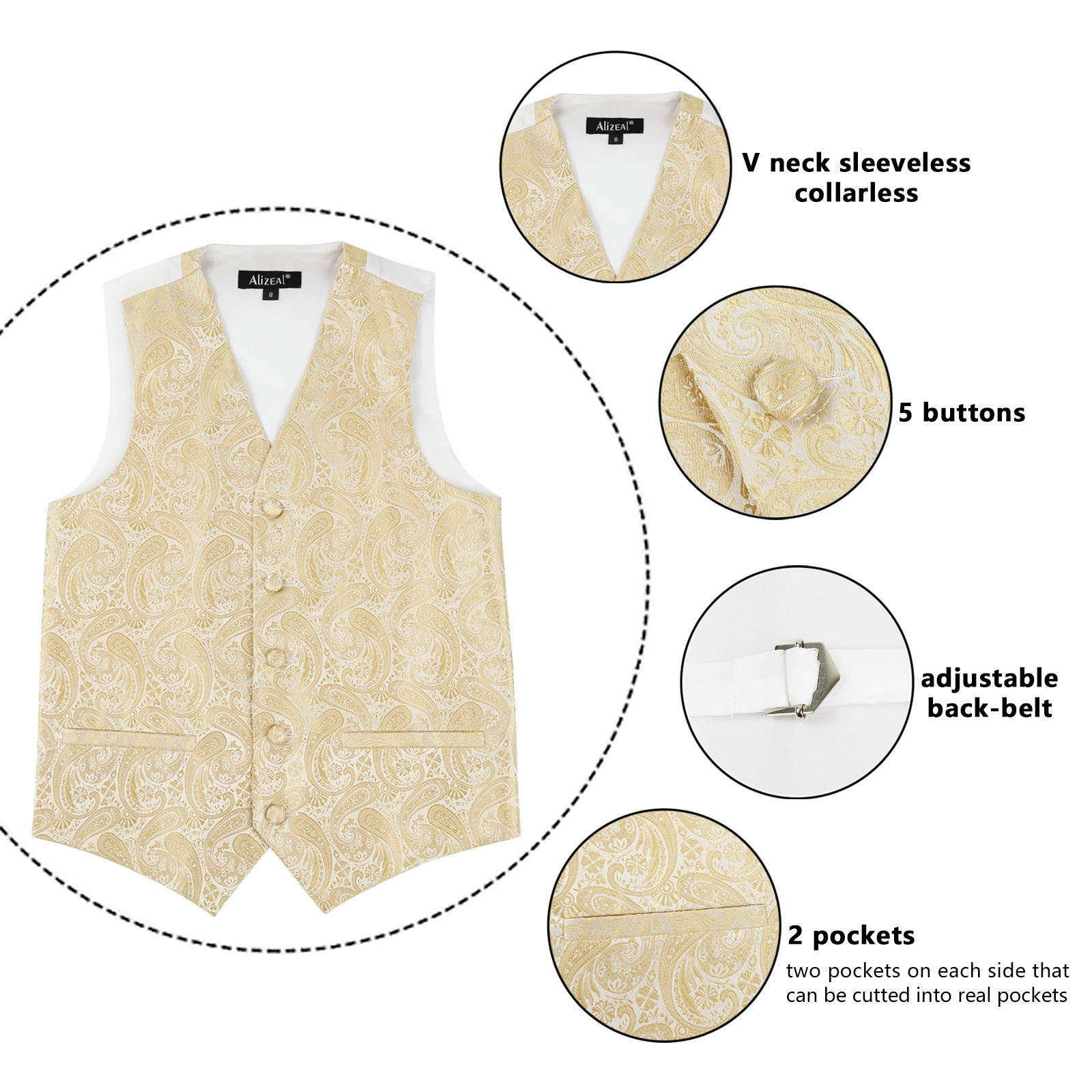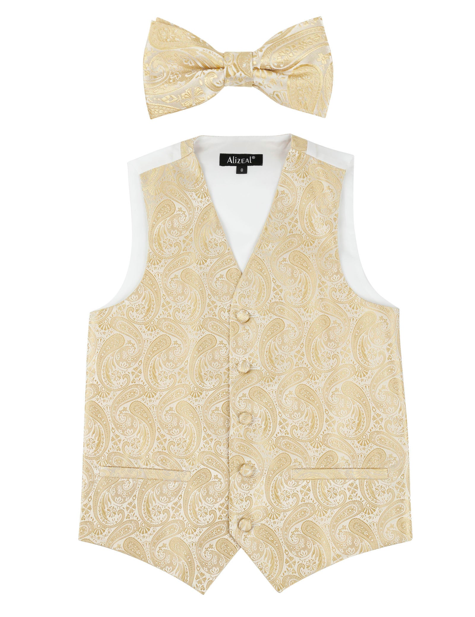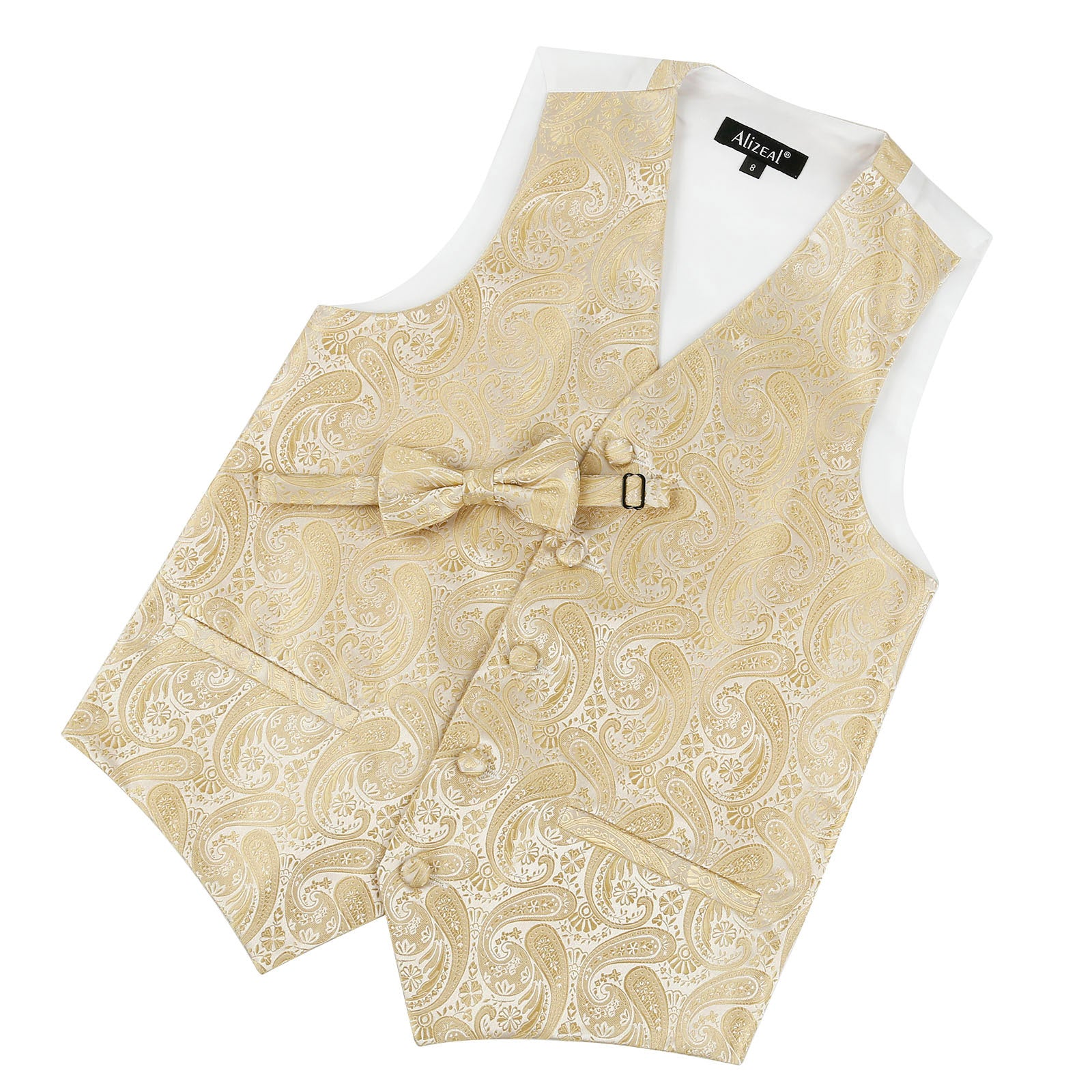- PAKET ENTHALTEN: Dieses Anzugwesten-Set beinhaltet 1 vorgebundene Fliege und 1 Paisley-Weste für Jungen