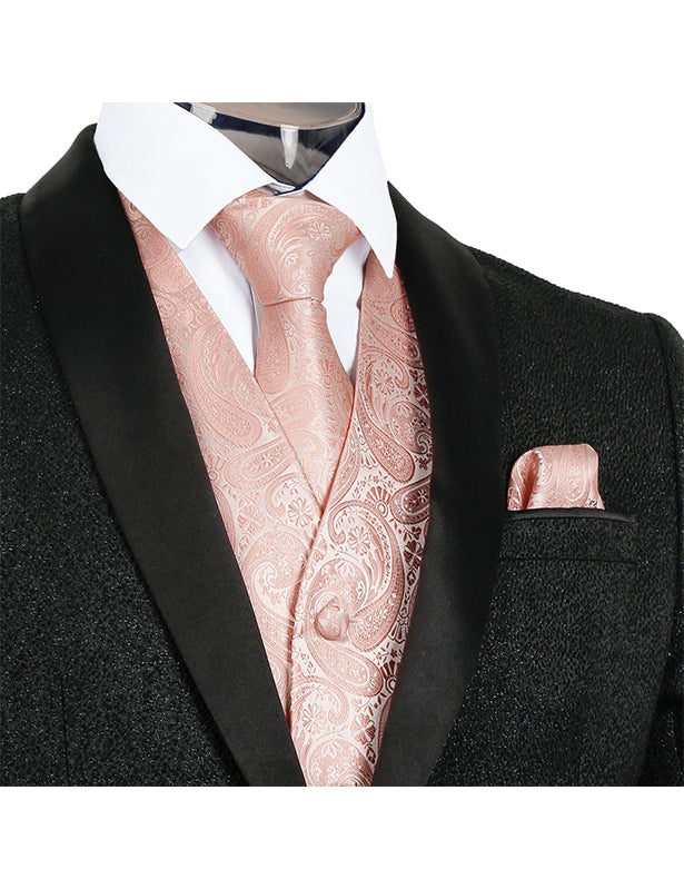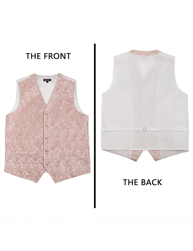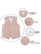 Herren 5-teiliges Paisley-Anzugwesten-Set, klassisches Jacquard-Button-Down-Westen-Set, 185-Blush Pink