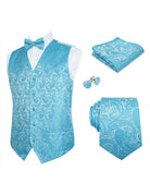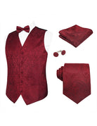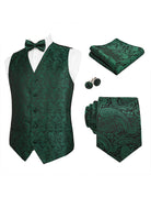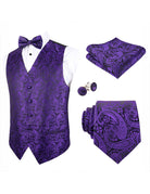 - DESIGN: Weste mit V-Ausschnitt, Fliege, Einstecktuch und Manschettenknöpfe sind mit klassischem Paisley-Muster und verschiedenen Farben gestaltet. Dieses Set ist aufgrund seiner außergewöhnlichen Ornamentwirkung zweifellos eine wunderbare Ergänzung für Ihre Sammlung.