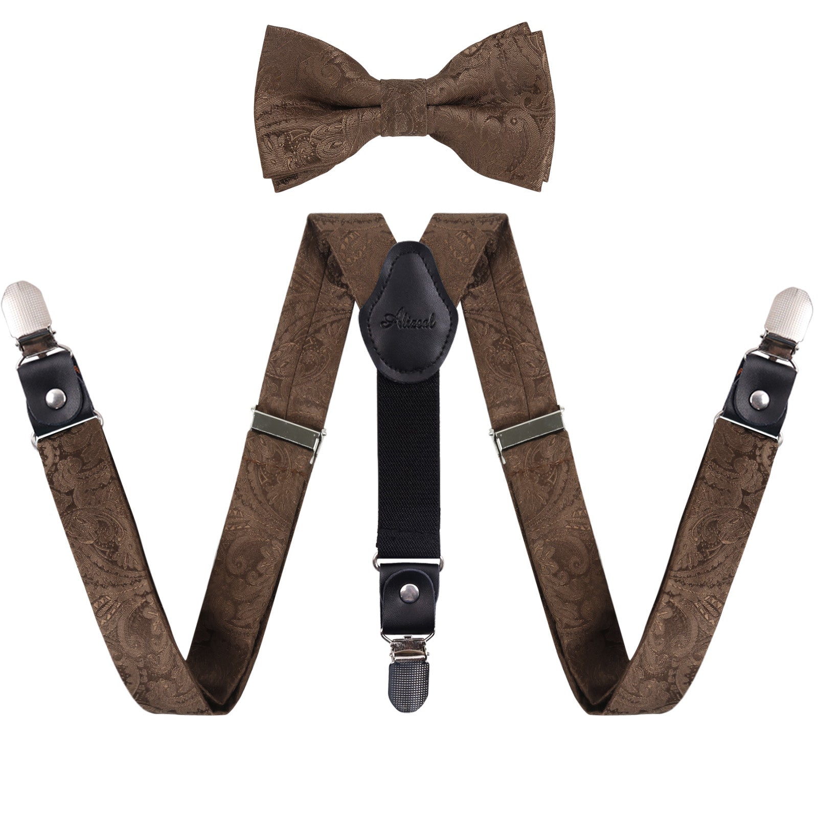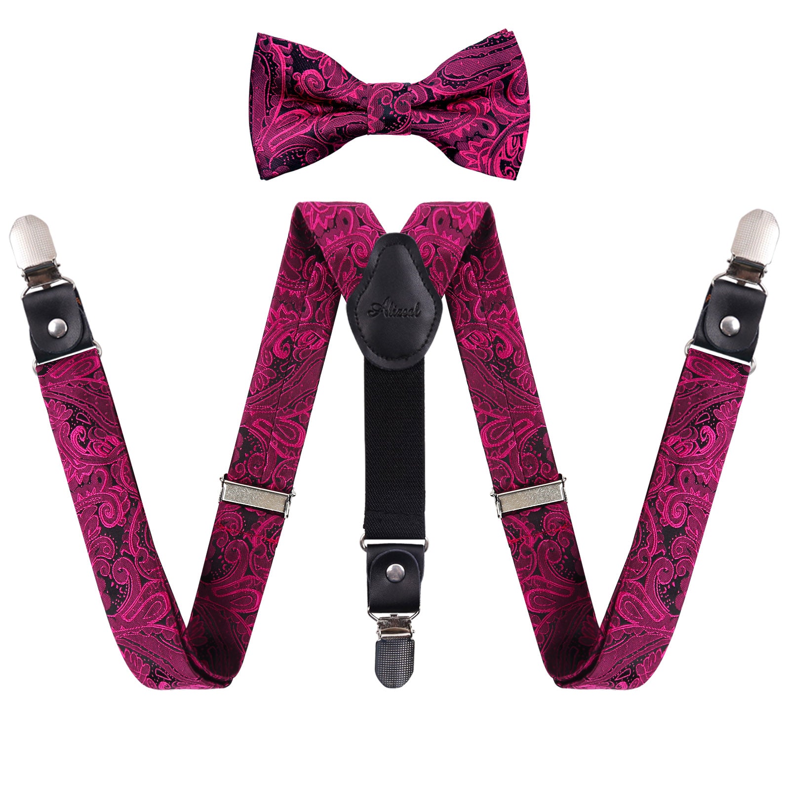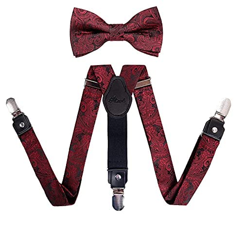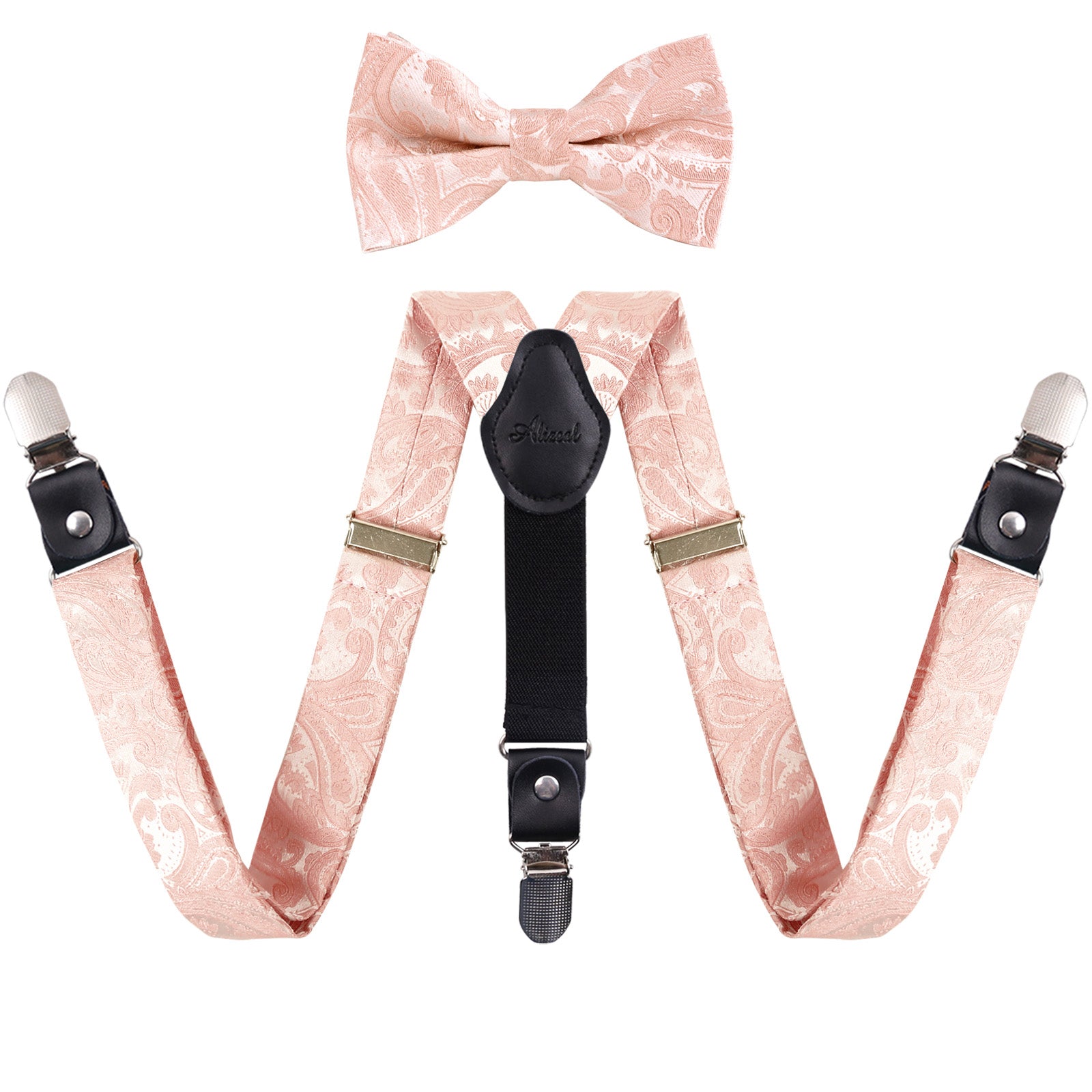 Verstellbare, vorgebundene Fliege mit Blumen-Paisley-Muster für Jungen und elastische Hosenträger in Y-Form mit 3 Clips, BD075