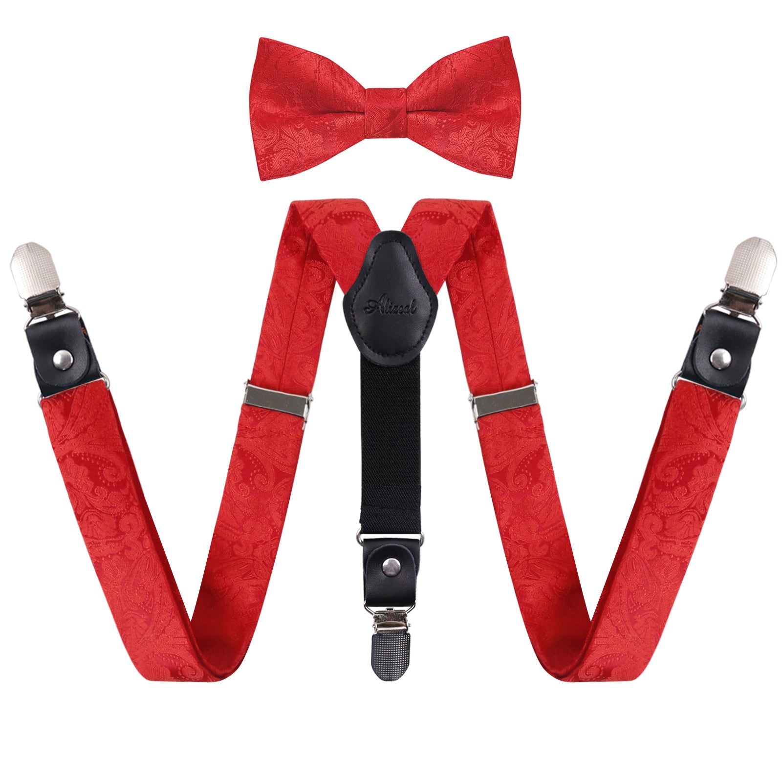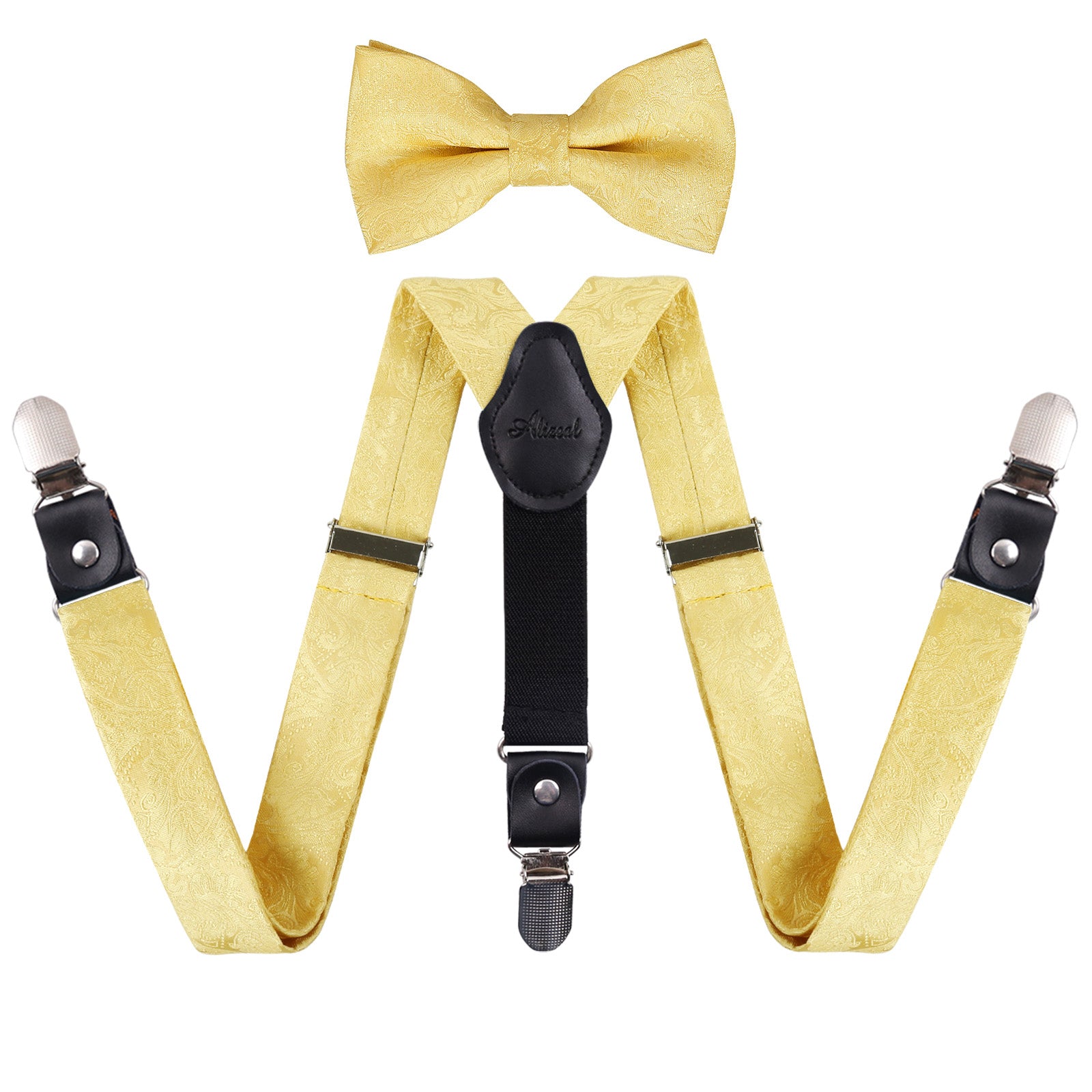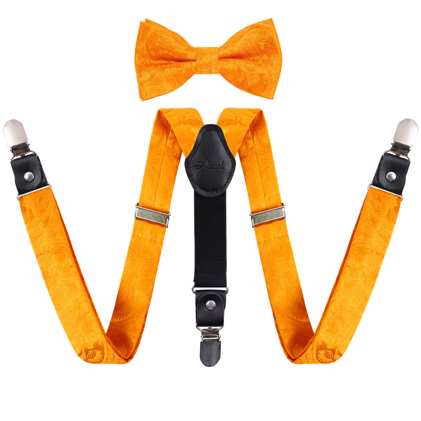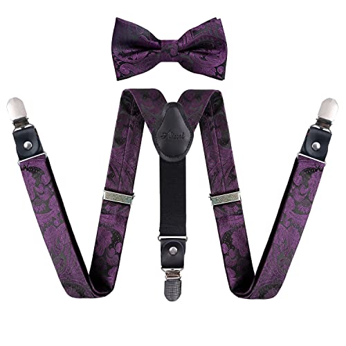 Verstellbare, vorgebundene Fliege mit Blumen-Paisley-Muster für Jungen und elastische Hosenträger in Y-Form mit 3 Clips, BD075