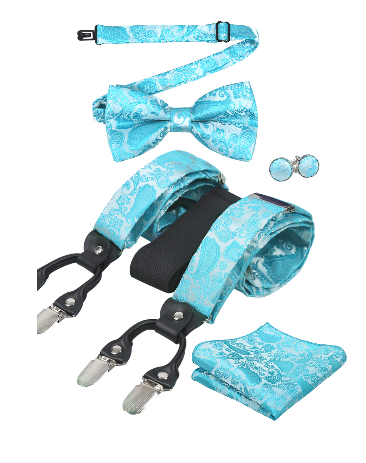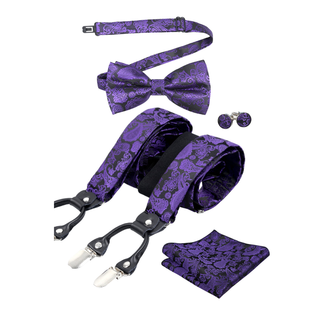 Herren-Set mit Hosenträgern und Fliege, Einstecktuch und Manschettenknöpfen im Paisley-Muster – BD074