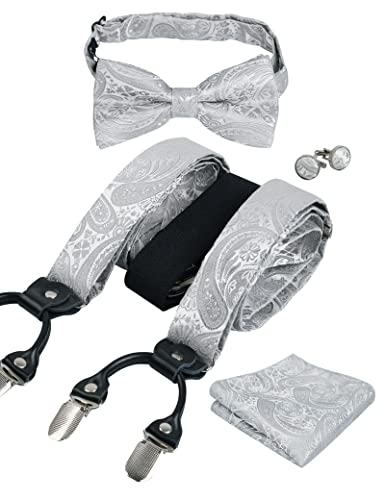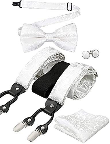 - PAKET BEINHALTET: 1 * Hosenträger, 1 * vorgebundene Fliege, 1 * Einstecktuch, 1 Paar * Manschettenknöpfe
